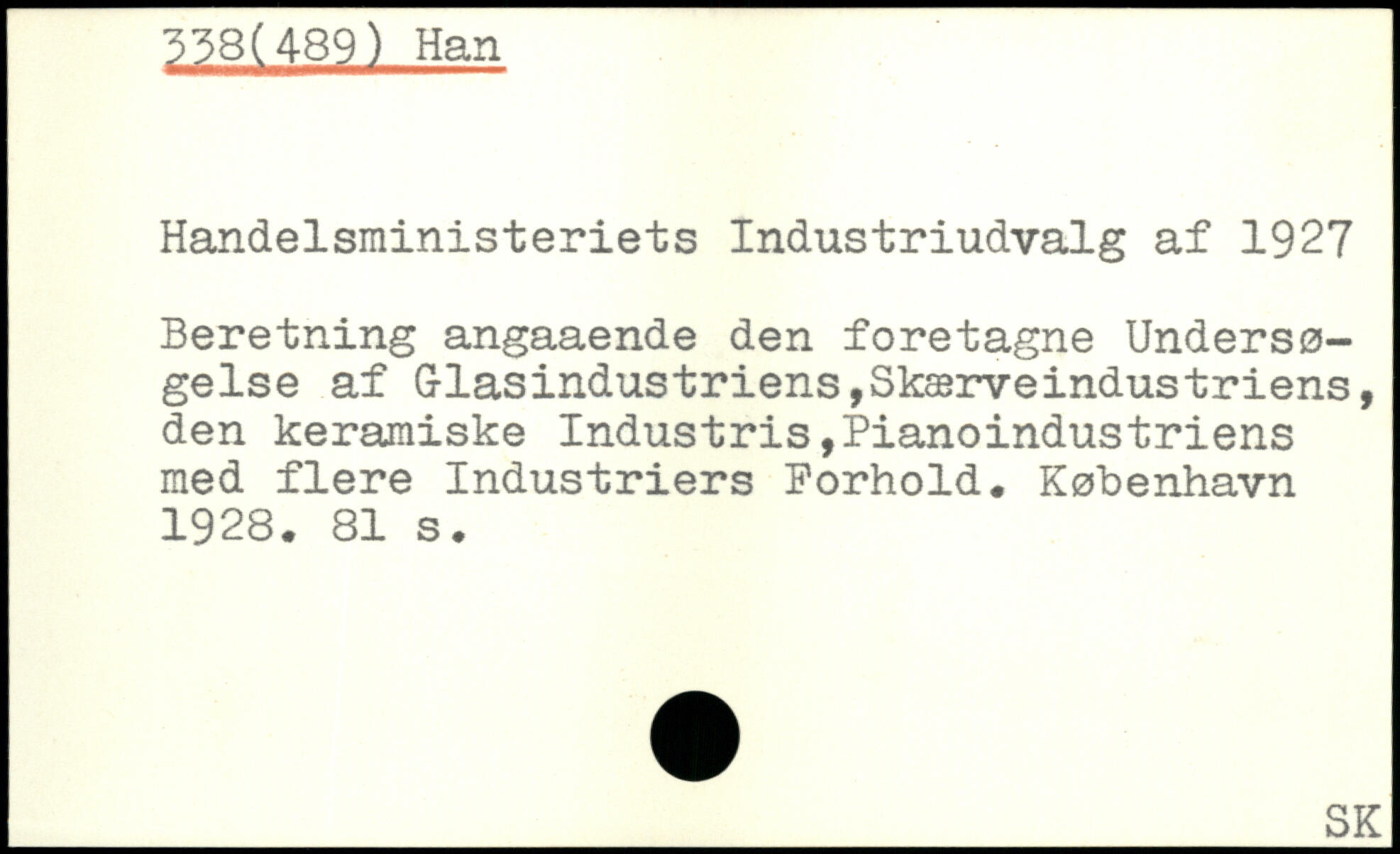 Handelsministeriets Industriudvalg af 1927 Beretning angaaende den foretagne Undersøgelse af Glasindustriens,Skærveindustriens, den keramiske Industris,Pianoindustriens med flere Industriers Forhold.