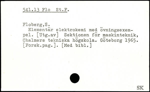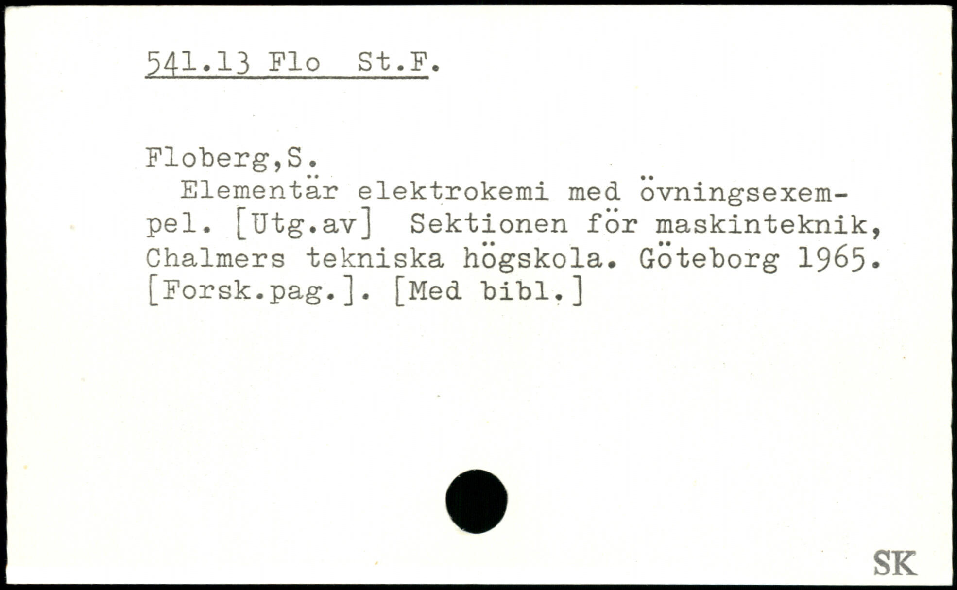 Elementar elektrokemi med övningsexempel. [Utg.av] Sektionen för maskinteknik, Chalmers tekniska hogskola. Göteborg 1965. [Forsk.pag.].