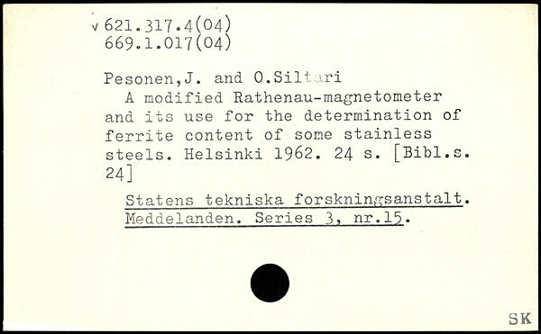 A modified Rathenau-magnetometer and its use for the determination of ferrite content of some stainless steels.