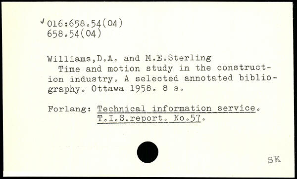 Time and motion study in the construction industry,, A selected annotated bibliography o