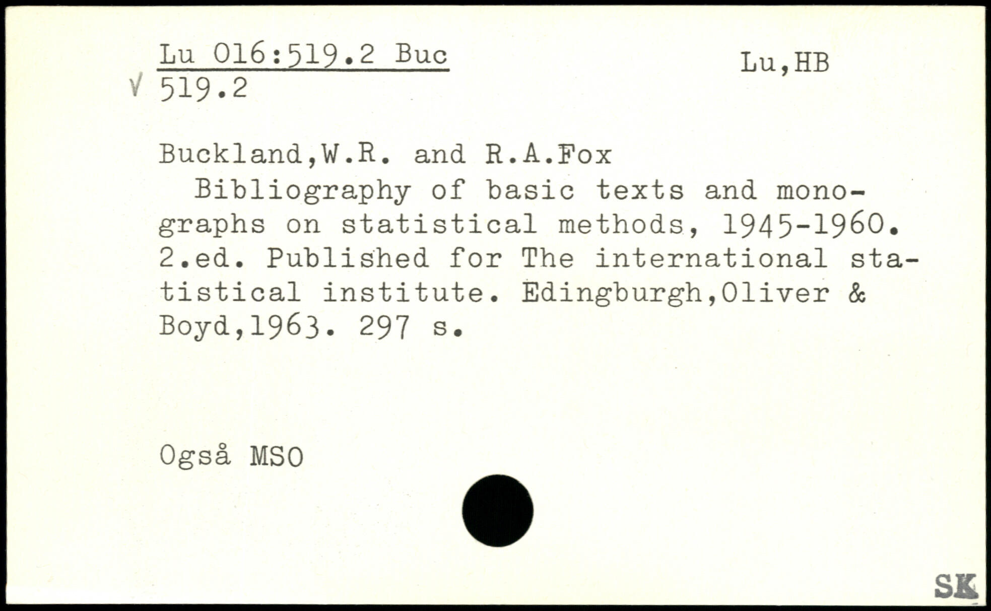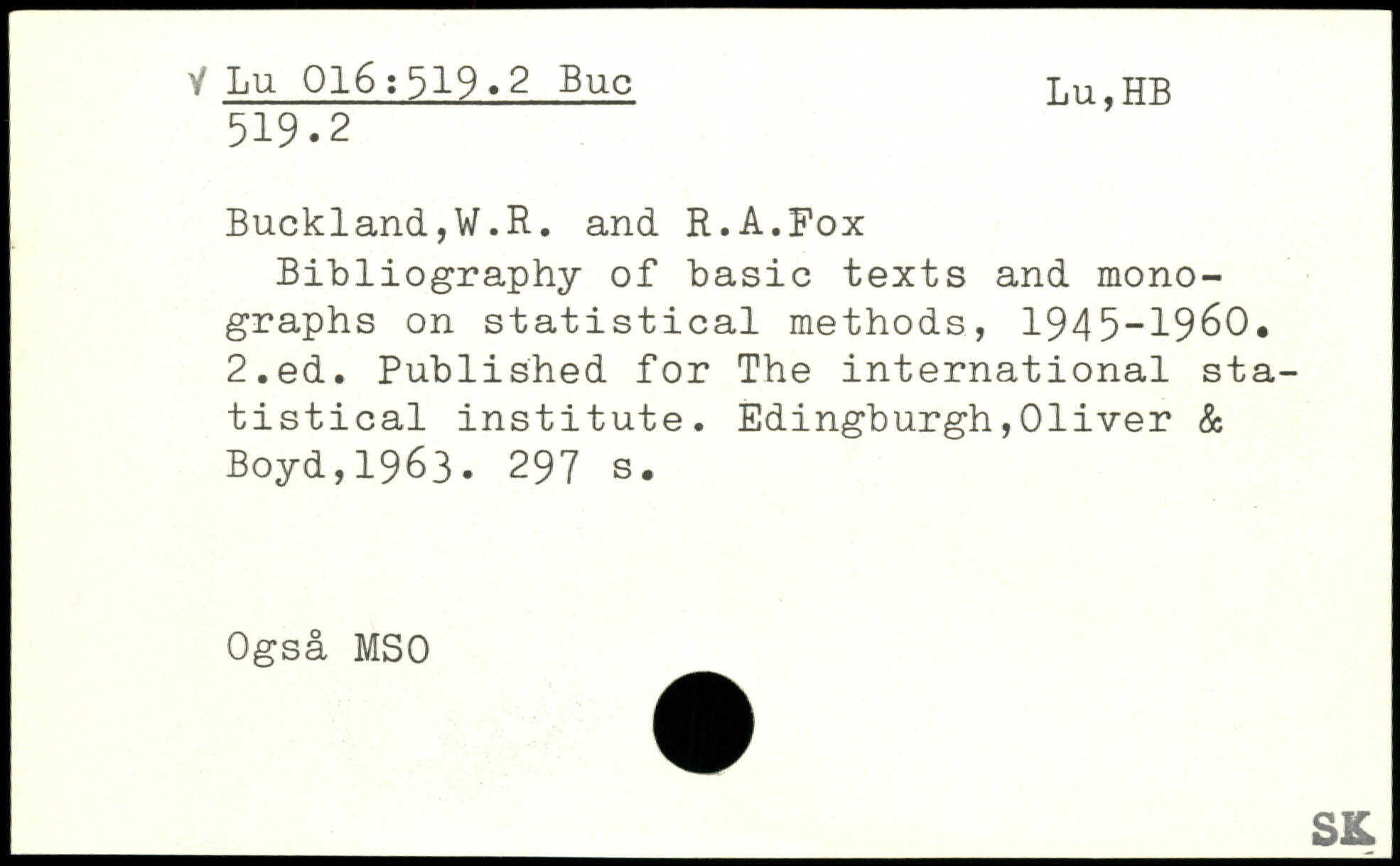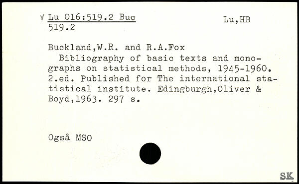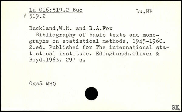 Bibliography of basic texts and monographs on statistical methods, 1945-1960.