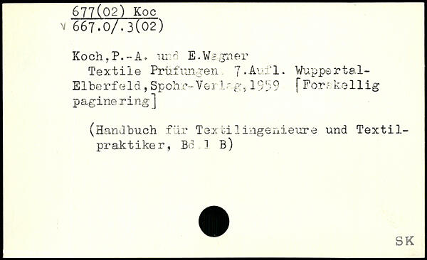 Textile Prüfungen. 7. Aui‘1. Wuppertal-Elberfeld , Spohr~¥er lag., 1959 f Fort kellig paginering]