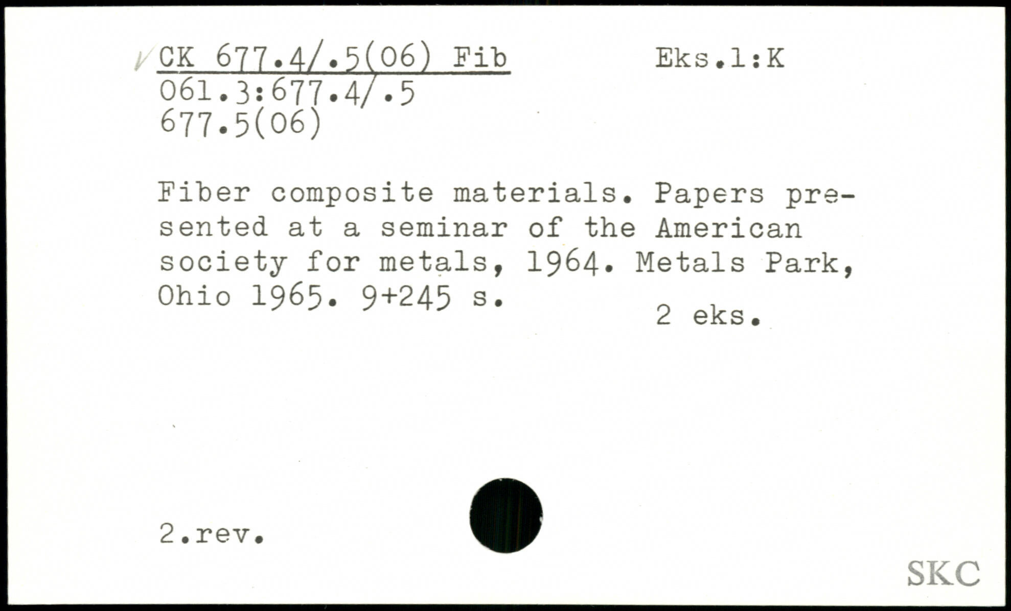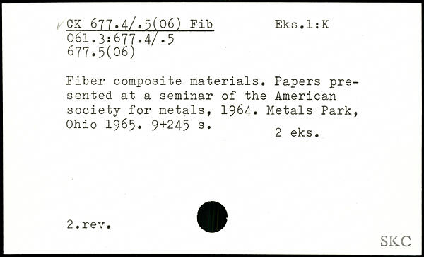 Fiber composite materials. Papers presented at a seminar of the American society for metals, 1964, Metals Park, Ohio 1965.
