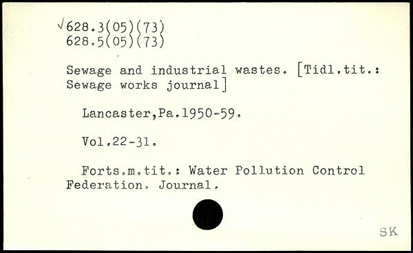 Sewage and industrial wastes. [Tidl.tit.: Sewage works journal] Lancaster,Pa.1950-59.