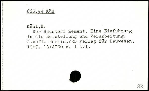 j Kühl,H, Der Baustoff Zement. Eine Einführung in die Herstellung und Verarbeitung.