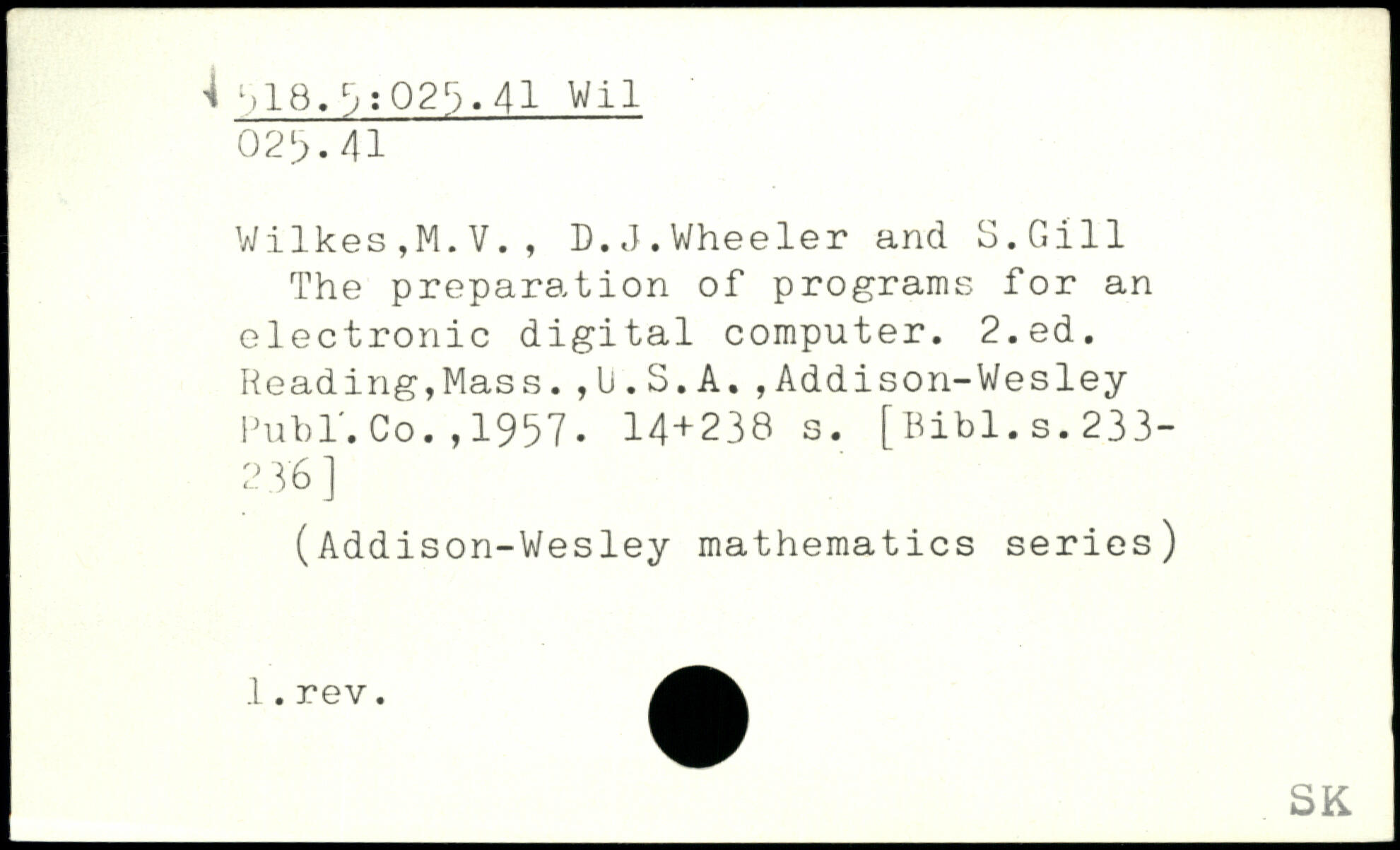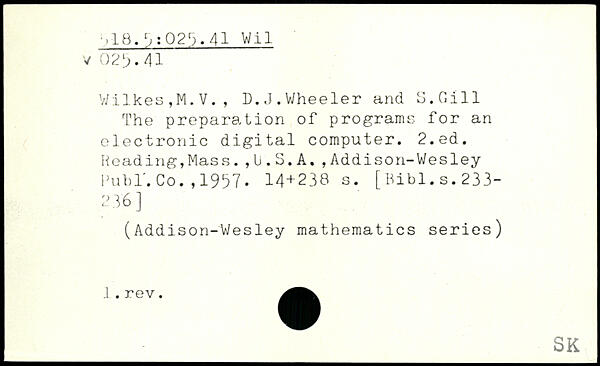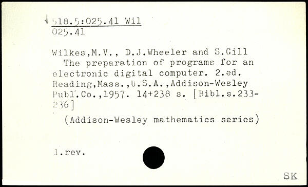 Wilkes,M.V., D.J.Wheeler and S.Gill The preparation of programs for an electronic digital computer.