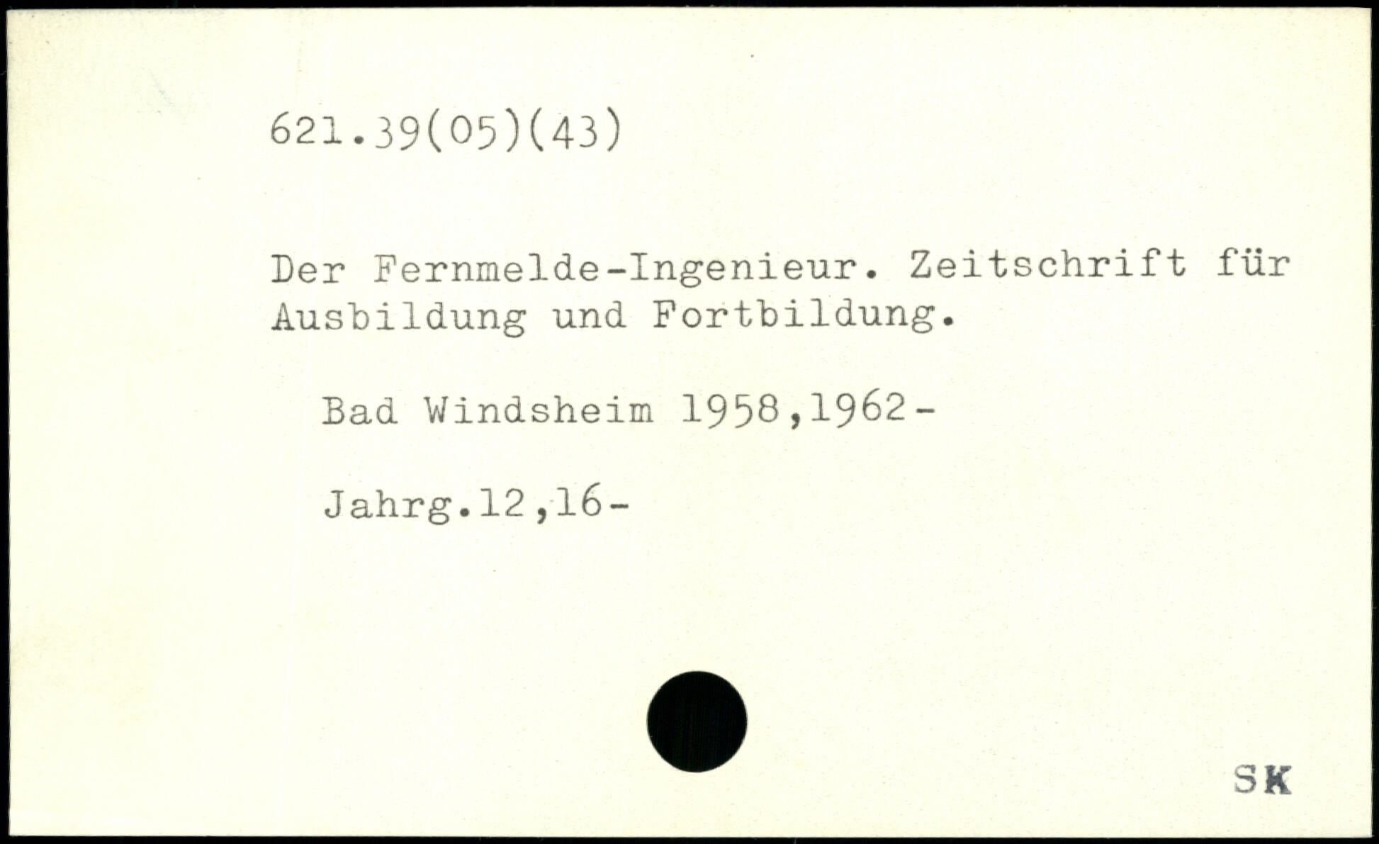 Der Fernmelde-Ingenieur. Zeitschrift für Ausbildung und Fortbildung. Bad Windsheim 1958,1962- Jahrg.12,16-