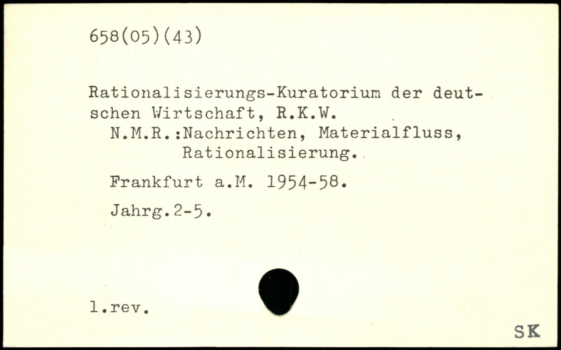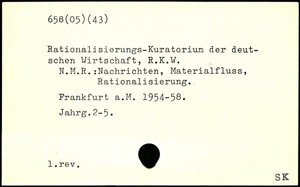 Rational!sierungs-Kuratorium der deutschen Wirtschaft, R.K.V. N.M.R.:Nachrichten, Materialfluss, Rationalisierung. Frankfurt a.M. 1954-58, Jahrg.2-5.