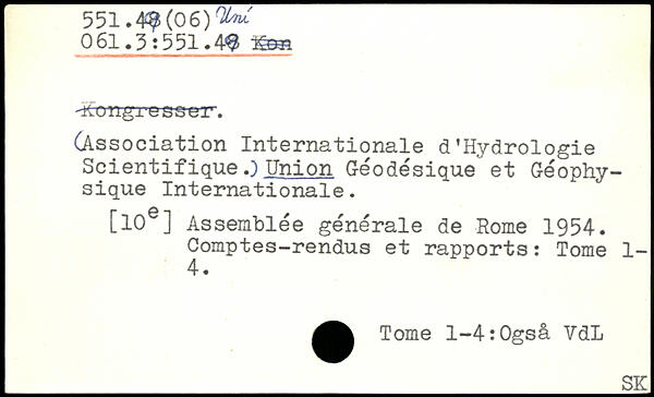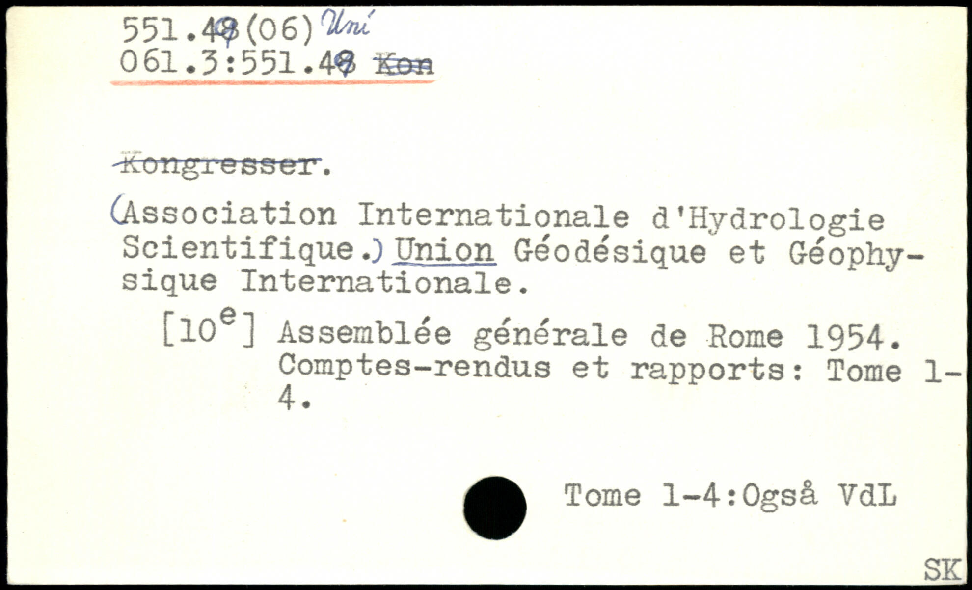 -nongresser-, (Association Internationale d’Hydrologie ScientifiqueQ Union Géodésique et Géophysique Internationale. [10e] Assemblée générale de Rome 1954. Comptes-rendus et rapports : Tome 1-4. Tome l-4:0gsâ VdL