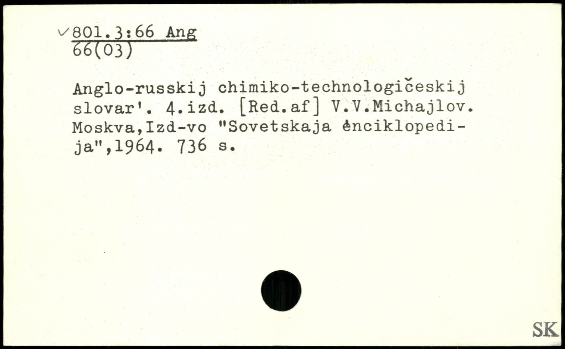 Anglo-russkij chimiko-technologiceskij slovar’. 4.izd. [Red.af] V.V.Michajlov. Moskva,Izd-vo "Sovetskaja énciklopedi-ja",1964.