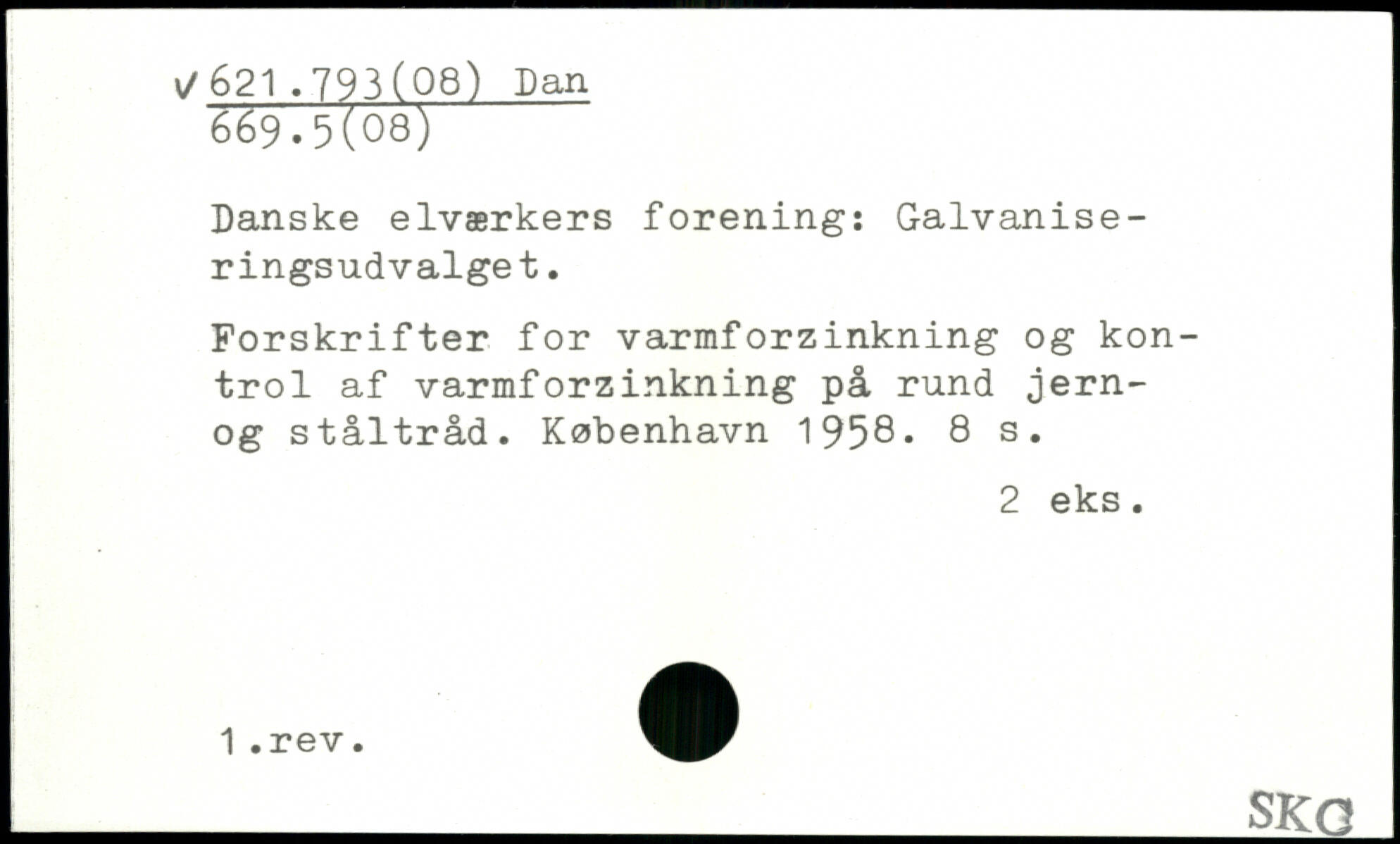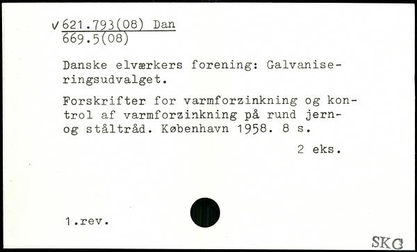 Danske elværkers forening: Galvaniseringsudvalget. Forskrifter for varmforzinkning og kontrol af varmforzinkning på rund jern-og ståltråd.