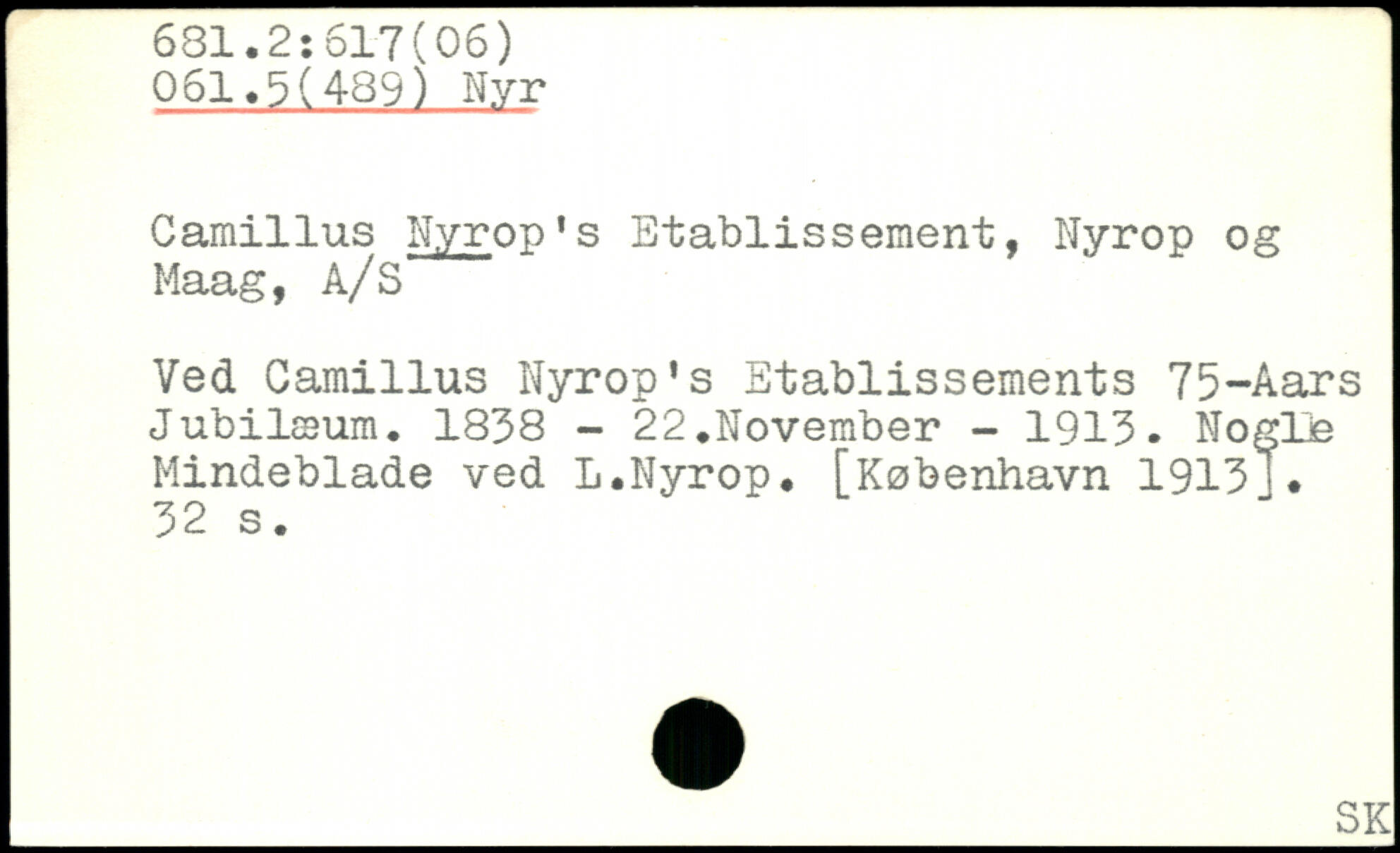 Camillus Nyrop's Etablissement, Nyrop og Maag, A/S Ved Camillus Nyrop’s Etablissements 75-Aars Jubilæum. 1838 - 22.November - 1913. NogUe Mindeblade ved L.Nyrop.