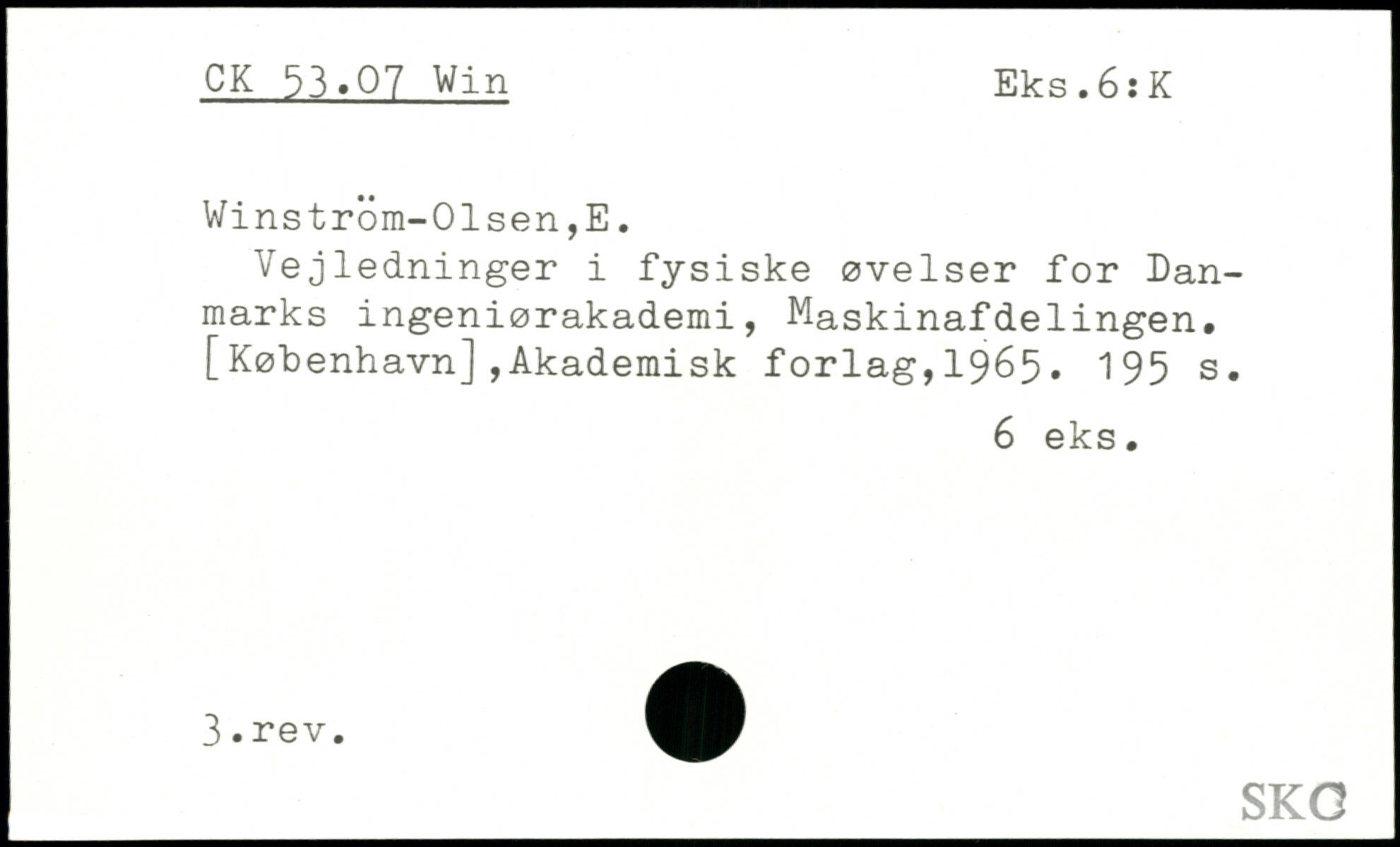 Winstrom-01sen,E. Vejledninger i fysiske øvelser for Danmarks ingeniørakademi, Maskinafdelingen, [København],Akademisk forlag,1965.