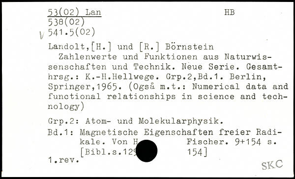 Laridolt, [H. ] und [K.] Börnstein Zahlenwerte und Funktionen aus Naturwissenschaften und Technik. Neue Serie. Gesamt-hrsg.: K.-H.Hellwege. Grp.2