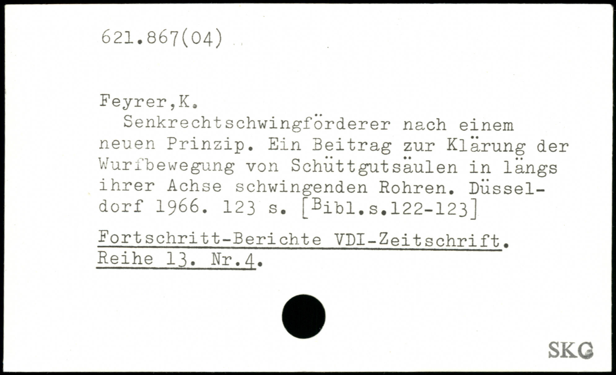 Senkrecht Schwingförderer nach einem neuen Prinzip. Ein Beitrag zur Klärung der Wurfbewegung von Schüttgut säulen in längs ihrer Achse schwingenden Rohren. Düsseldorf 1966.