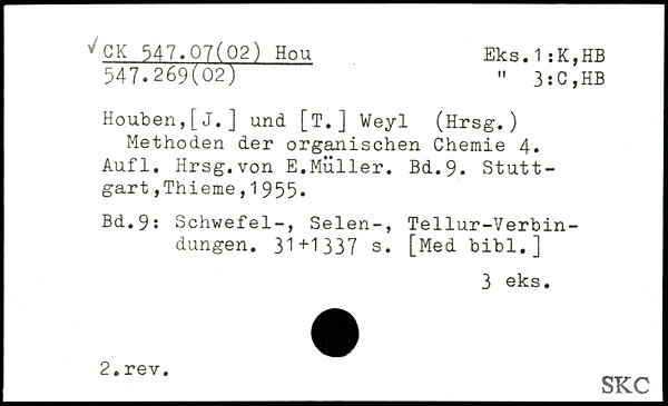 Houben, [ J. ] und [T.] Weyl (Hrsg.) Methoden der organischen Chemie