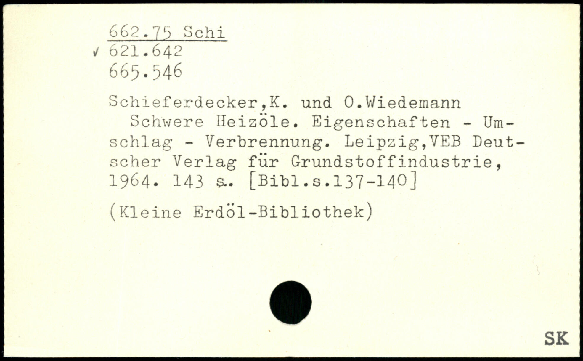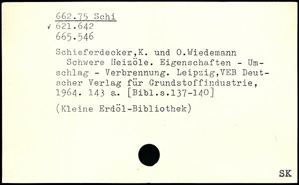 Schief erdecker ,K. und 0. Wiedernann Schwere Heizöle. Eigenschaften - Umschlag - Verbrennung. Leipzig,VEB Deutscher Verlag für Grundstoffindustrie, 1964. 143 &.