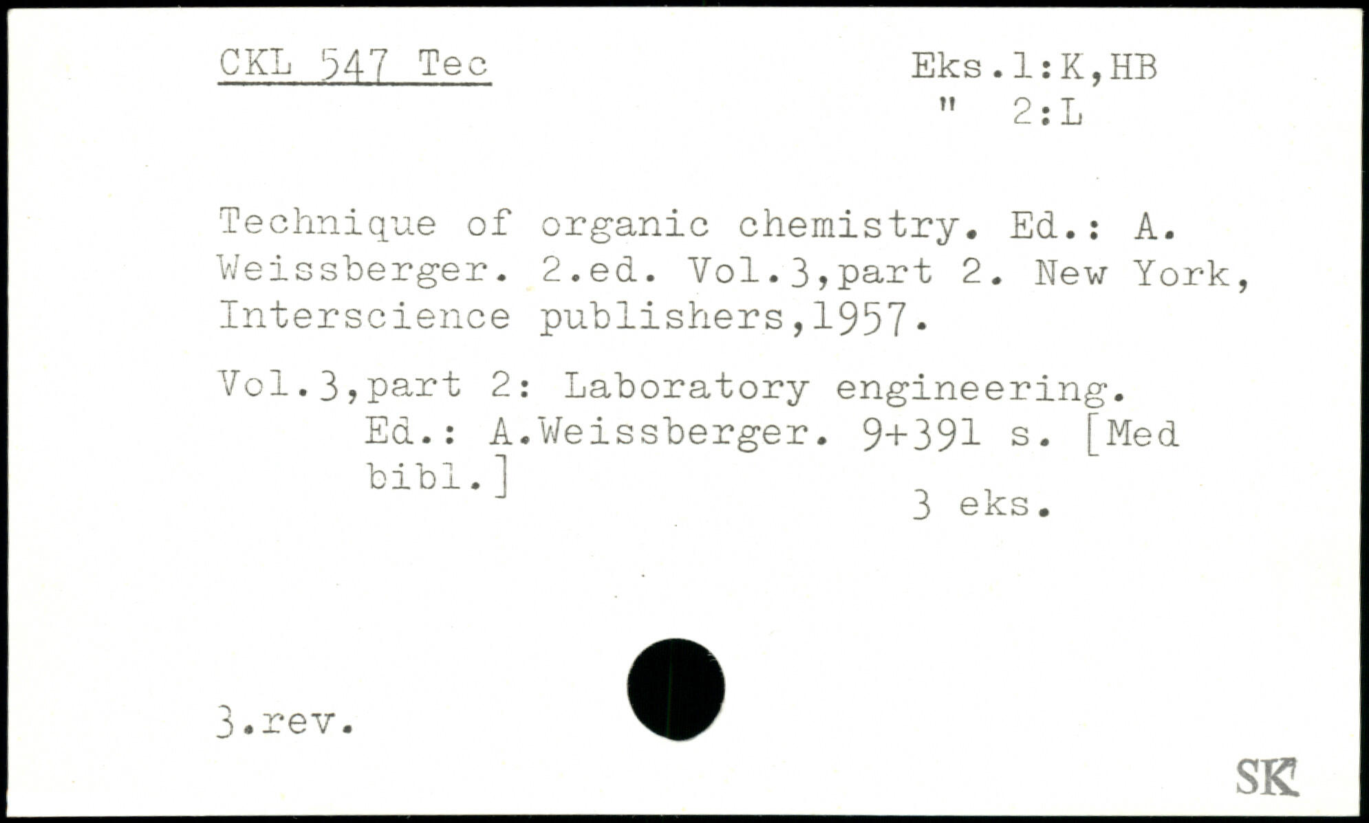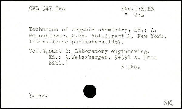 Technique of organic chemistry. Ed.: A. Weissberger.