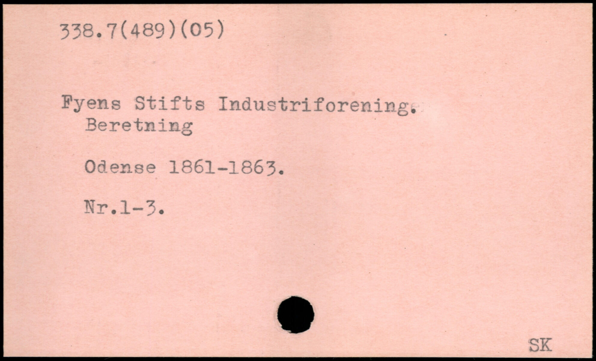 Fyens Stifts Industriforening. Beretning Odense 1861-1863. Nr.1-3.