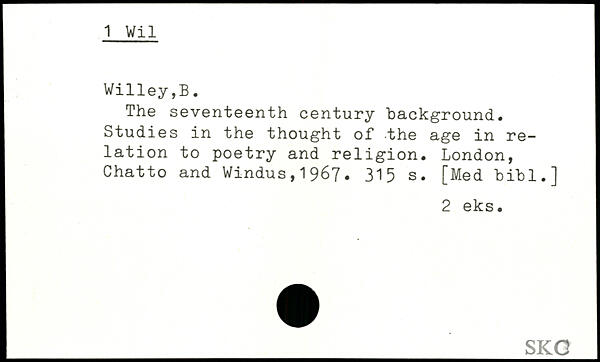 The seventeenth century "background. Studies in the thought of the age in relation to poetry and religion.
