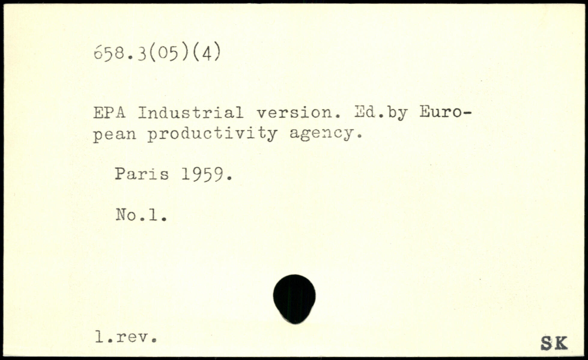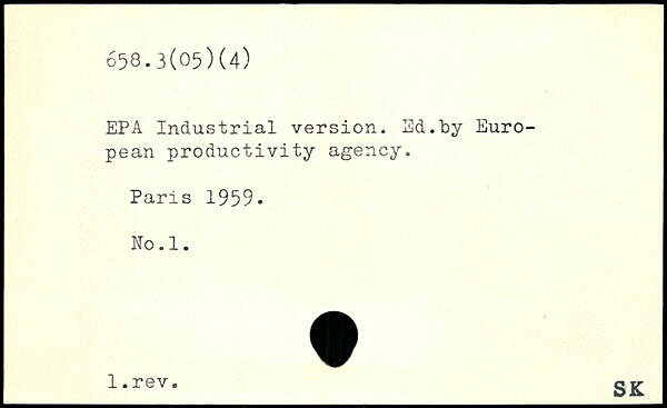 EPA Industrial version. Ed.by European productivity agency.
