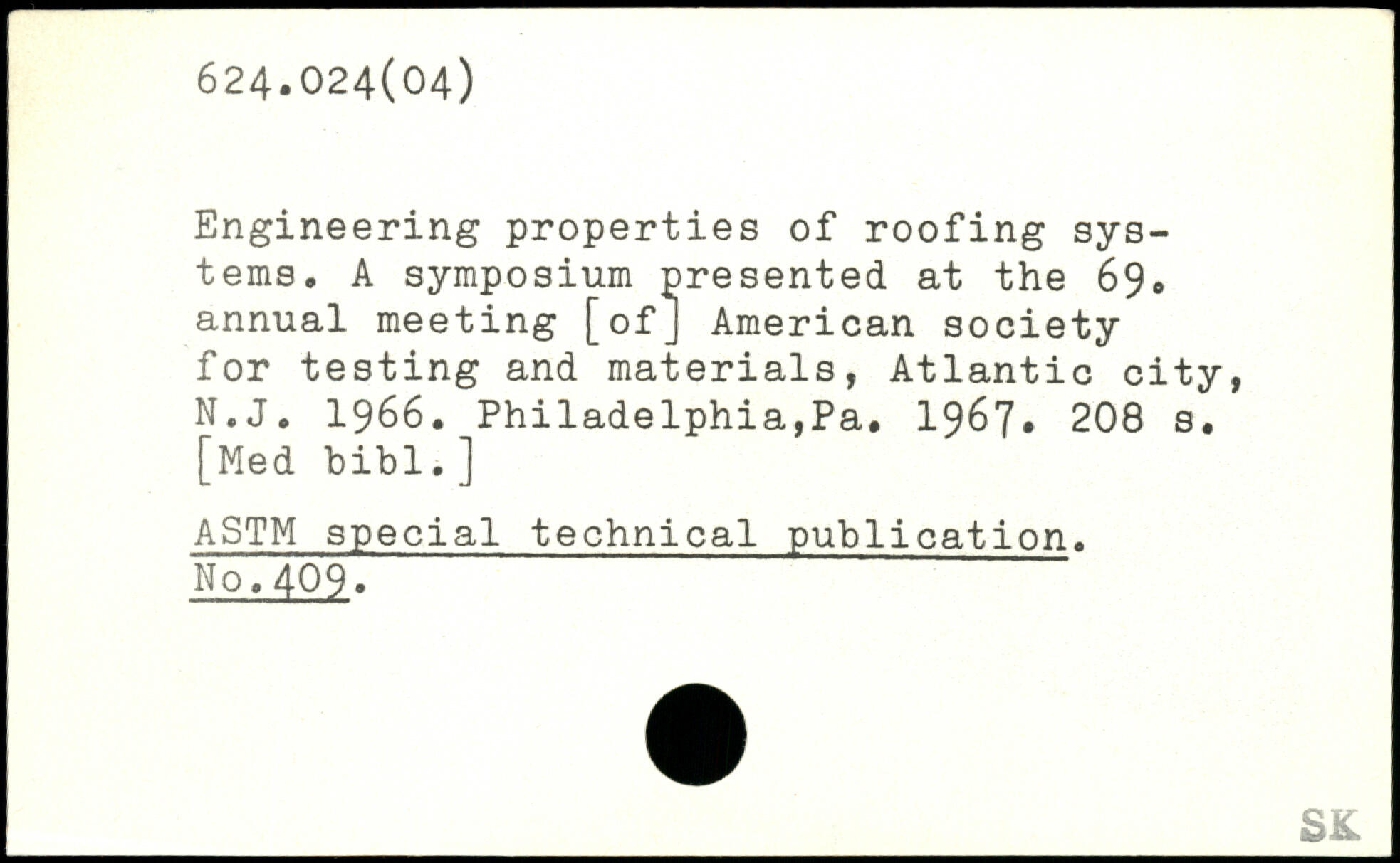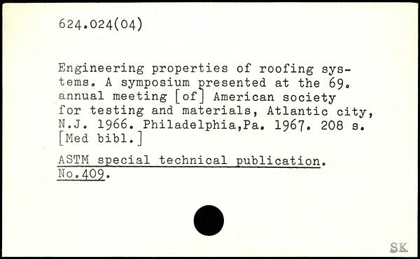 Engineering properties of roofing systems, A symposium presented at the 69. annual meeting [of] American society for testing and materials, Atlantic city, N.J, 1966. Philadelphia,Pa. 1967