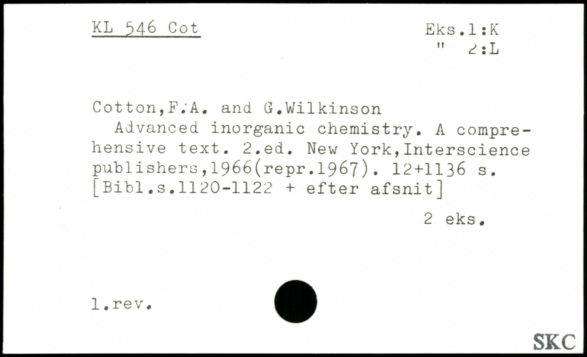 Forfatter: F.A. Cotton, G. Wilkinson