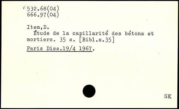Étude de la capillarité des bétons et mortiers.