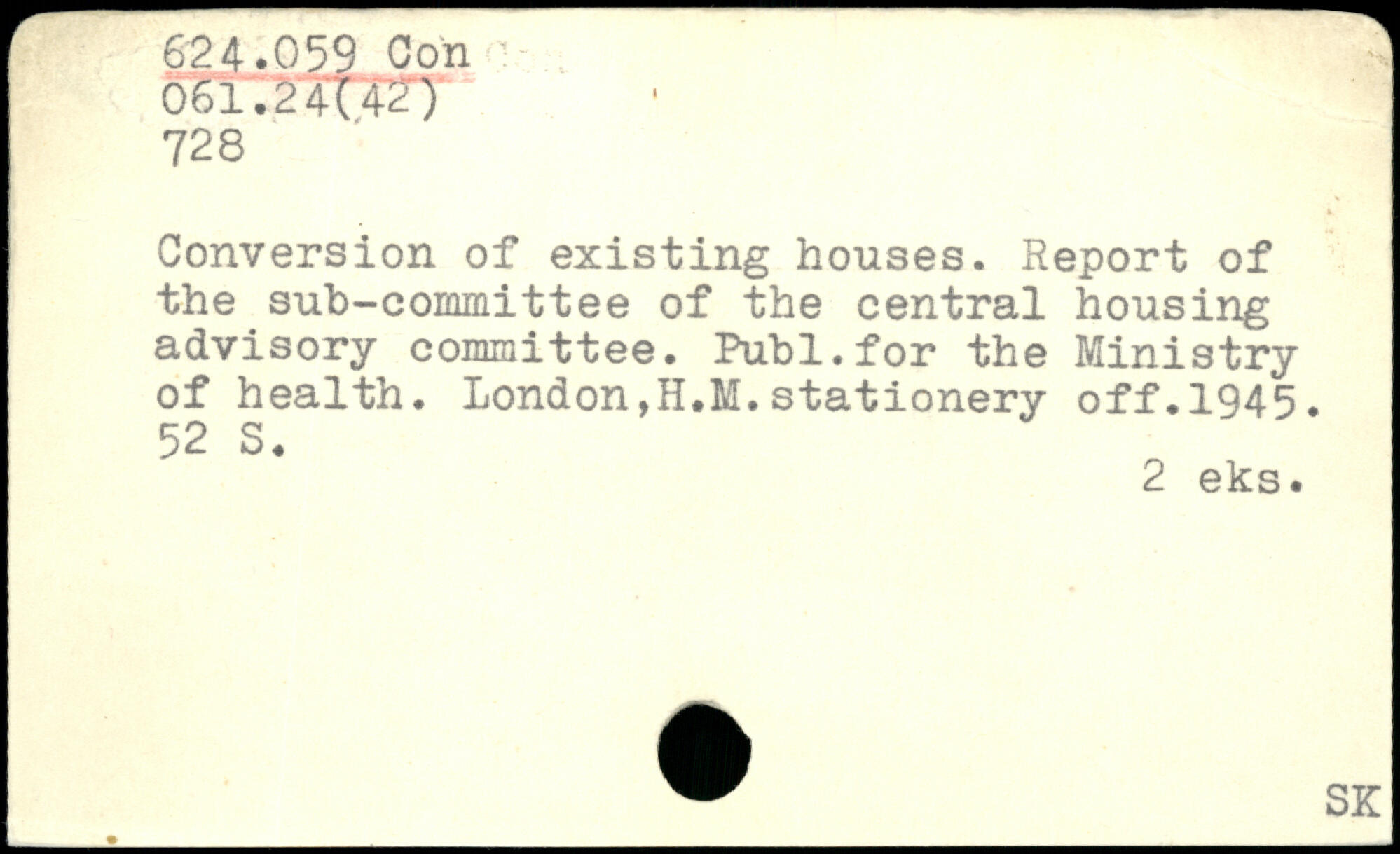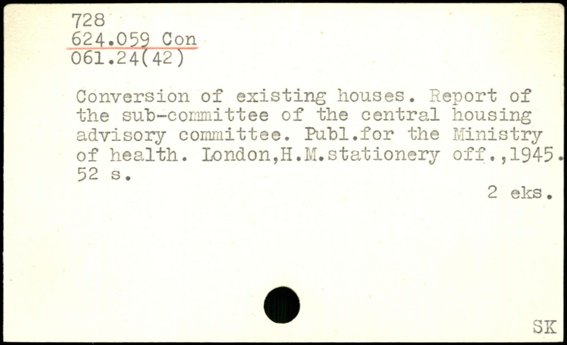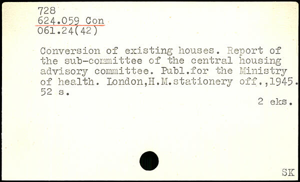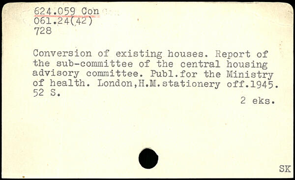 Conversion of existing houses. Report of the sub-committee of the central housing advisory committee. Publ.for the Ministry of health. London,H.M.stationery off.1945.