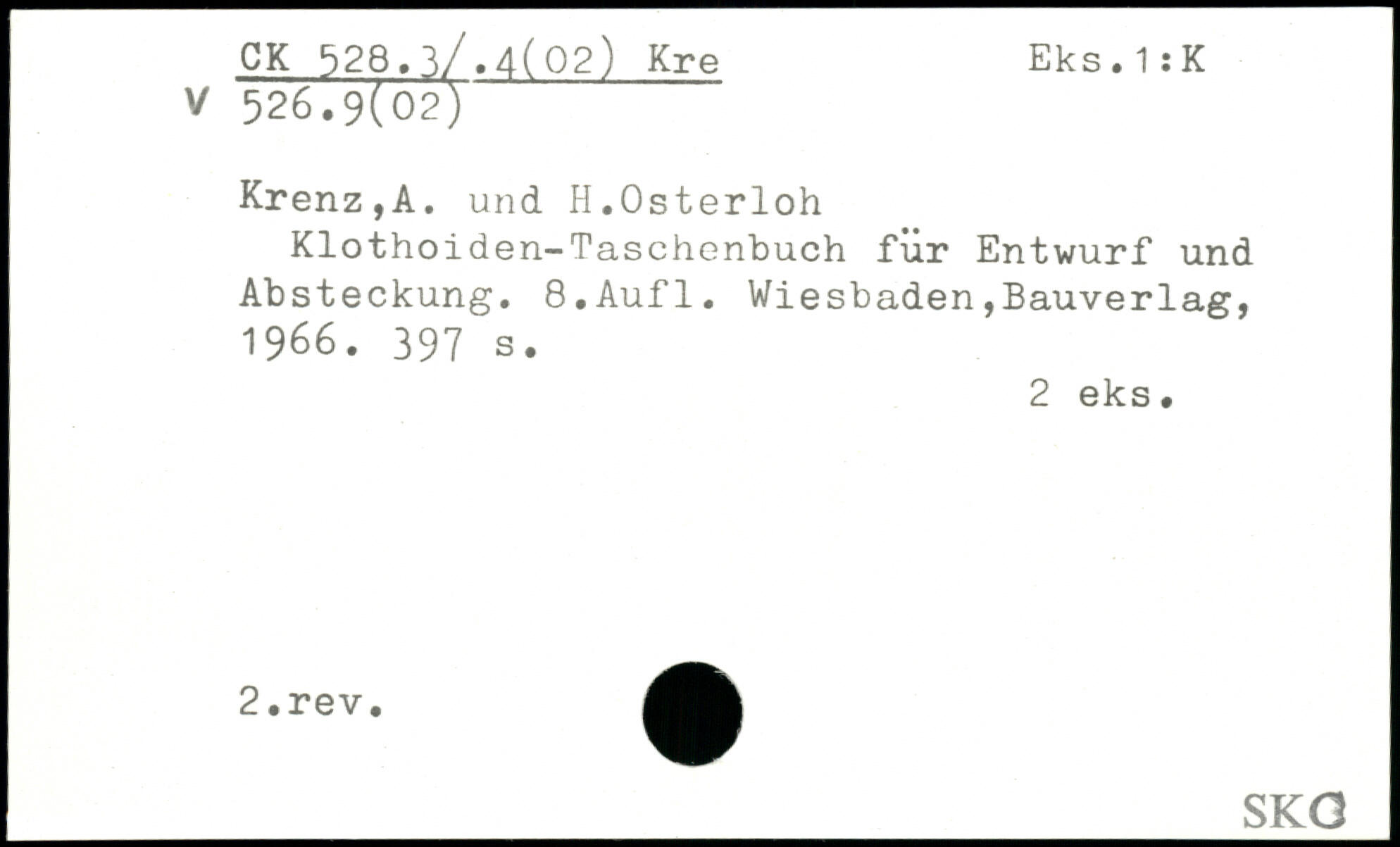 Klothoiden-Taschenbuch für Entwurf und Absteckung.