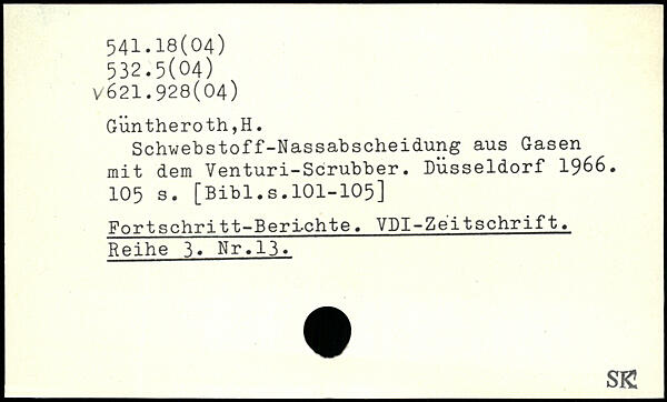 Schwebstoff-Nassabscheidung aus Gasen mit dem Yenturi-Scrubber. Düsseldorf 1966.