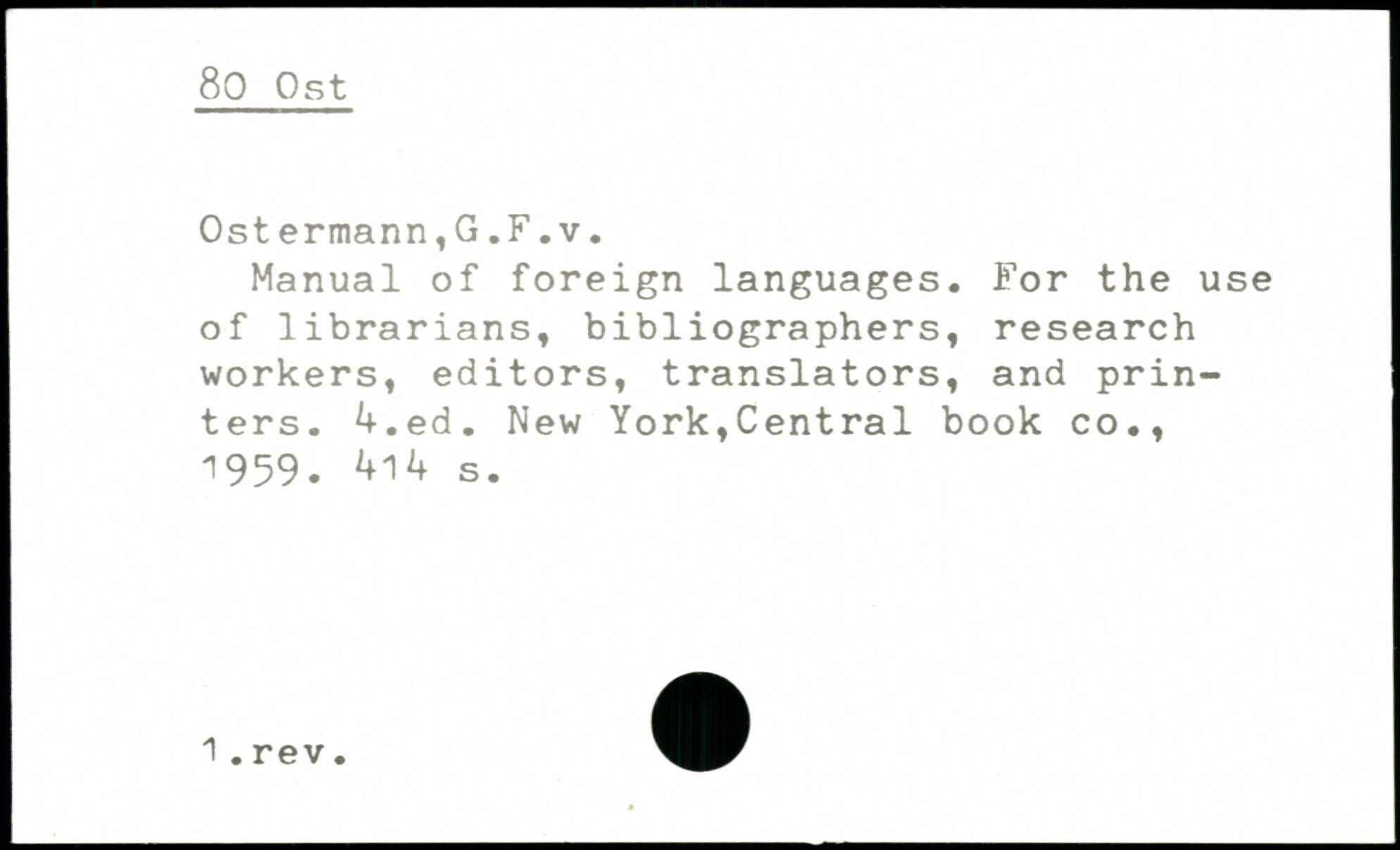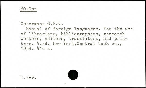 Manual of foreign languages. For the use of librarians, bibliographers, research workers, editors, translators, and printers. ^+.ed.