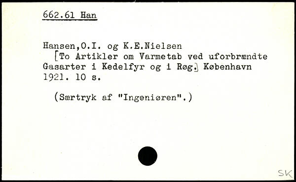 Hansen,0.I, og K.E.Nielsen [To Artikler om Varmetab ved uforbrændte Gasarter i Kedelfyr og i Røg?