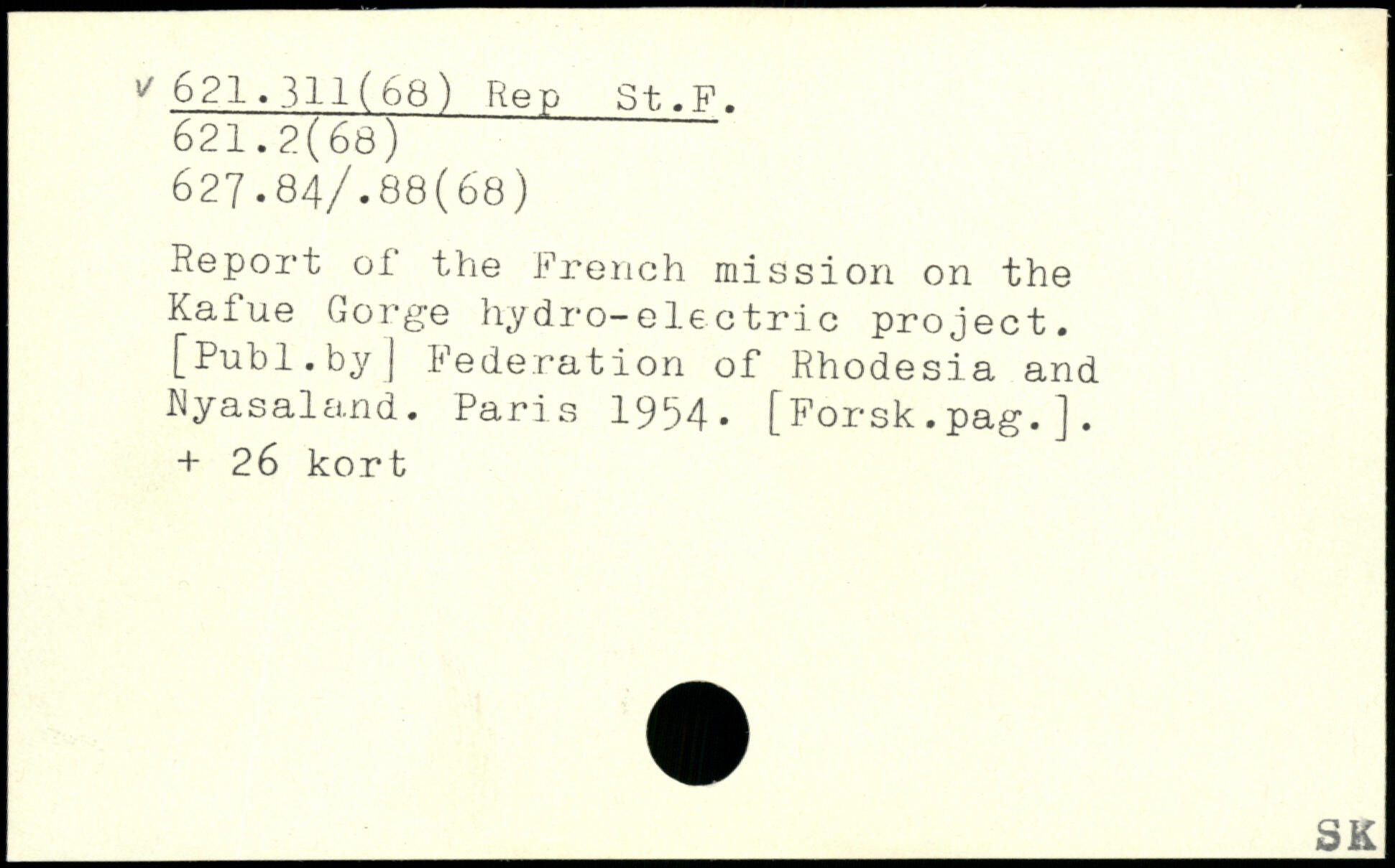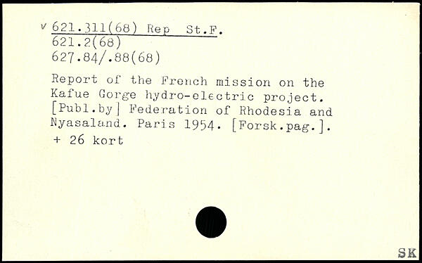 Report of the French mission on the Kafue Gorge hydro-electric project.