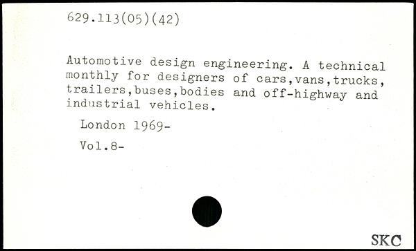 Automotive design engineering. A technical monthly for designers of cars,vans,trucks, trailers,buses,bodies and off-highway and industrial vehicles.