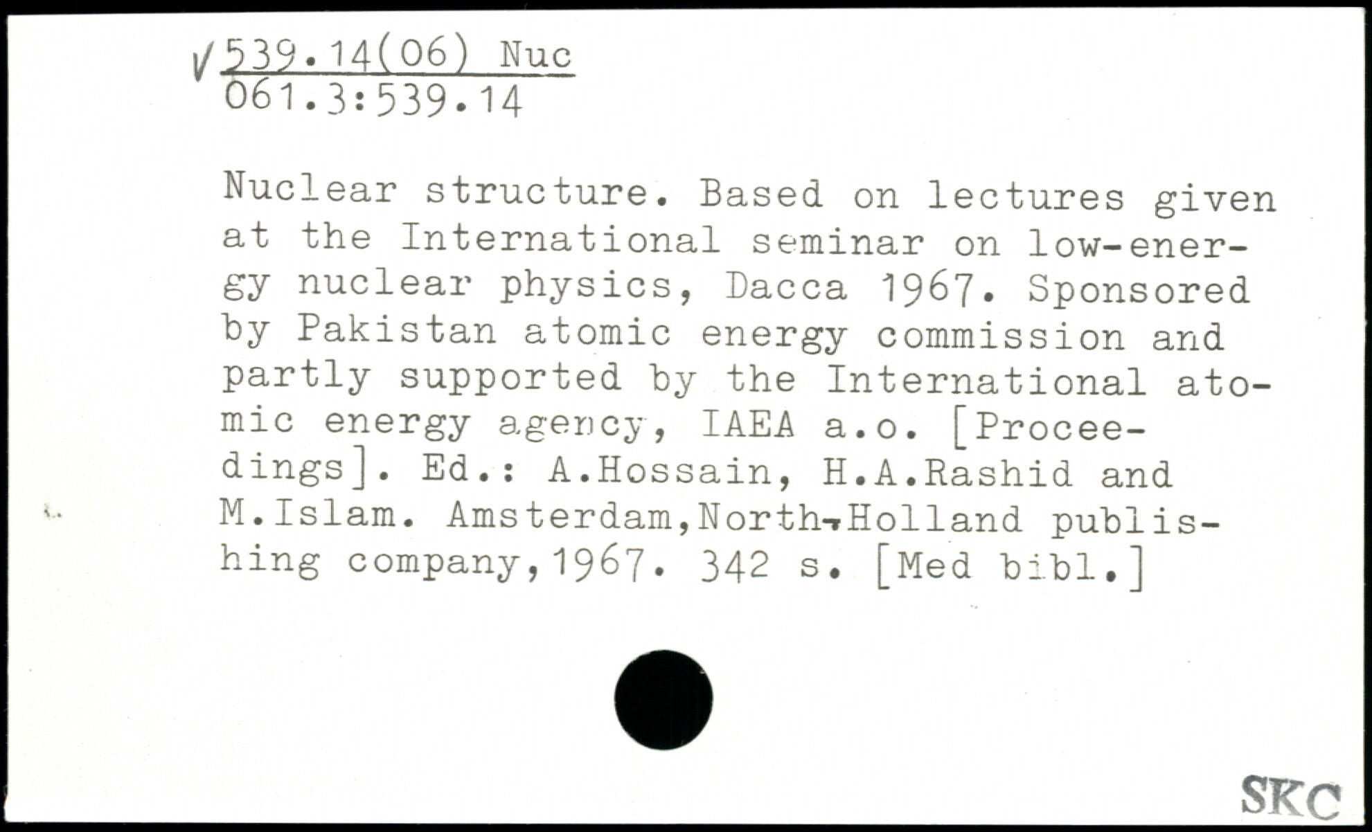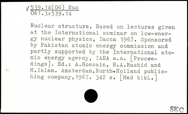 Nuclear structure. Based on lectures given at the International seminar on low-energy nuclear physics, Dacca 1967. Sponsored by Pakistan atomic energy commission and partly supported by the International atomic energy agency, IAEA a.o. [Proceedings]. Ed.: A.Hossain, H.A.Rashid and M. Islam.