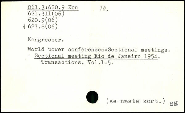 World power conferences:Sectional meetings. Sectional meeting Rio de Janeiro 1984. Transactions, Yol.1-5, (se næste kort.) ^