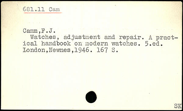 Watches, adjustment and repair. A practical handbook on modern watches.