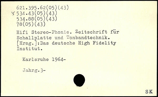 Hifi Stereo-Phonie. Zeitschrift für Schallplatte und l'onbandtechnik.