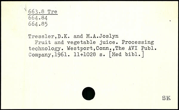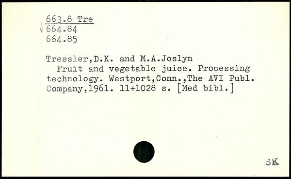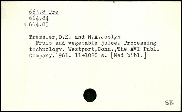 Fruit and vegetable juice. Processing technology. Westport,Conn.,The AVI Publ. Company,1961.