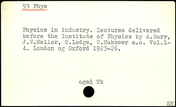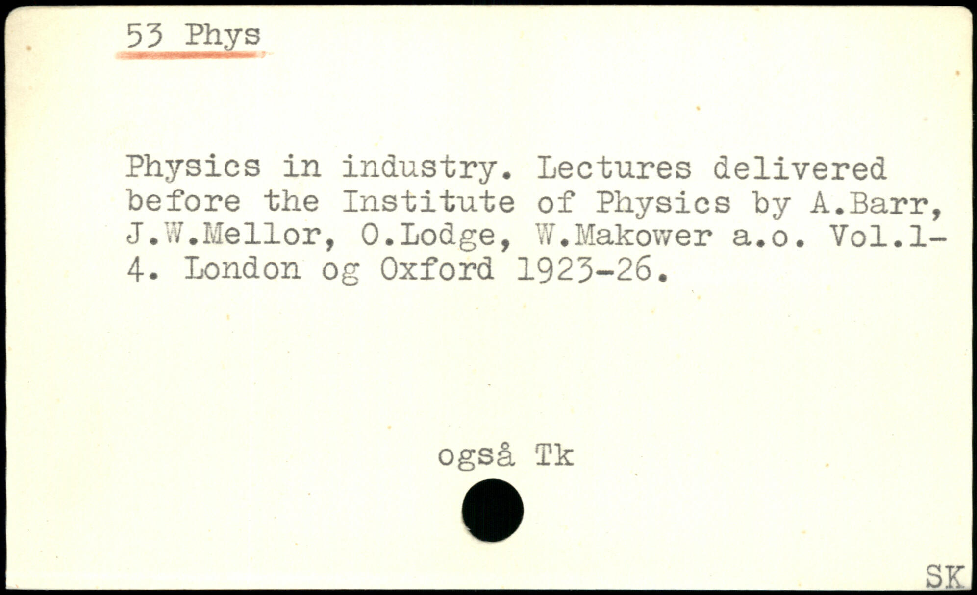 Physics in industry. Lectures delivered before the Institute of Physics by A.Barr, J.W.Mellor, 0.Lodge, W.Makower a.o. Vol.l-4. London og