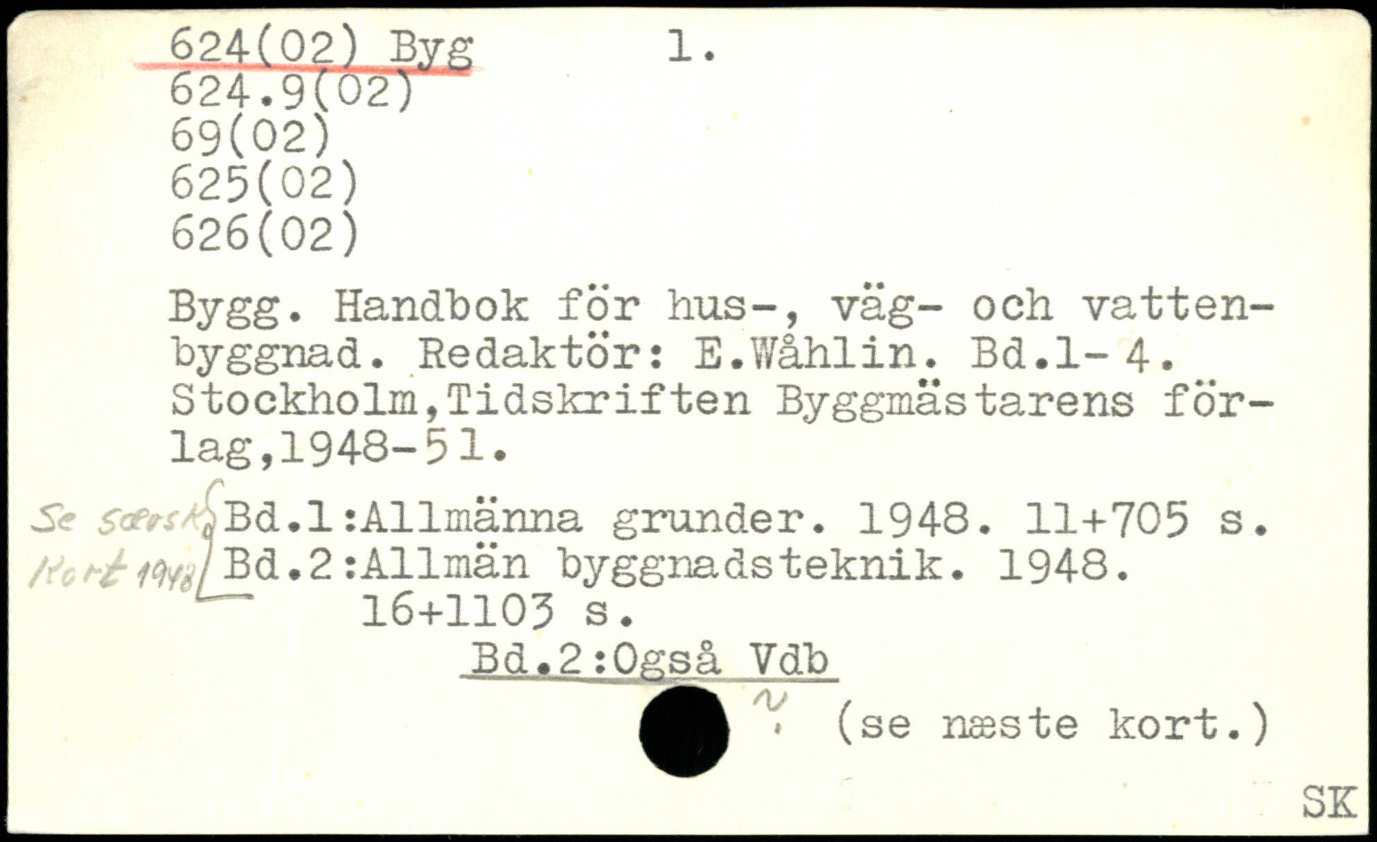 Bygg. Handbok för hus-, väg- och vattenbyggnad. Redaktör: E.Wåhlin.