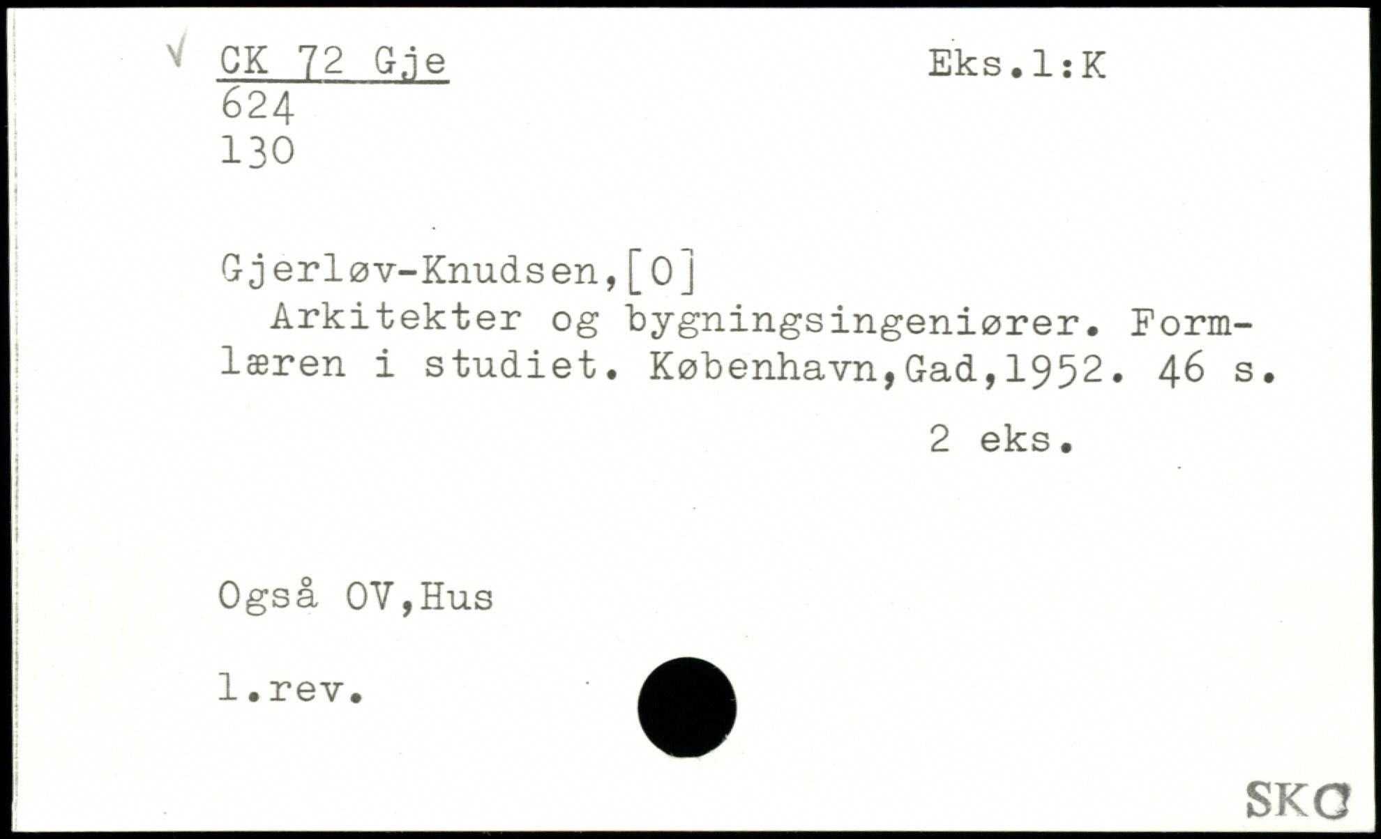I V GK 72 G,je Eks.lsK 624 j 130 Gjerløv-Knudsen, [0] I Arkitekter og "bygningsingeniører. Form læren i studiet.