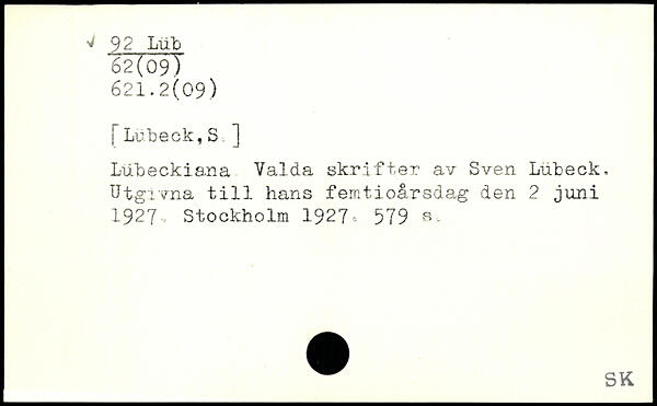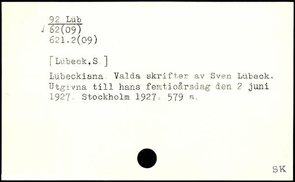 | Lübeck,S ] Lubeckiana Valda skrifter av Sven Lübeck. Utgivna till hans femtioårsdag den 2 juni