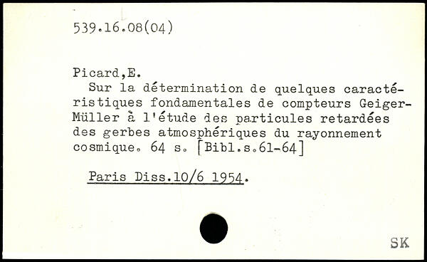 Sur la détermination de quelques caractéristiques fondamentales de compteurs Geiger-Müller a l'étude des pa.rticules retardées des gerbes atmosphériques du rayonnement cosmique.