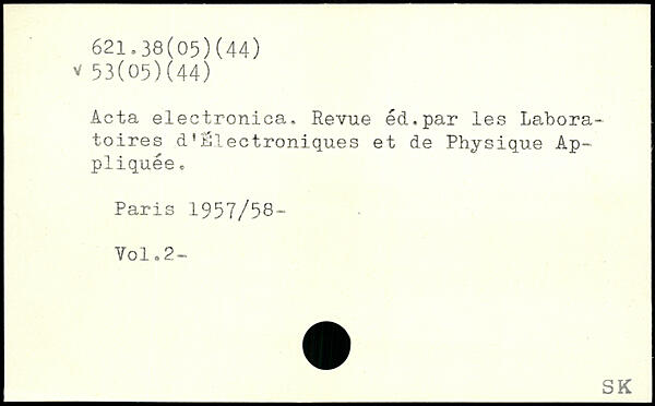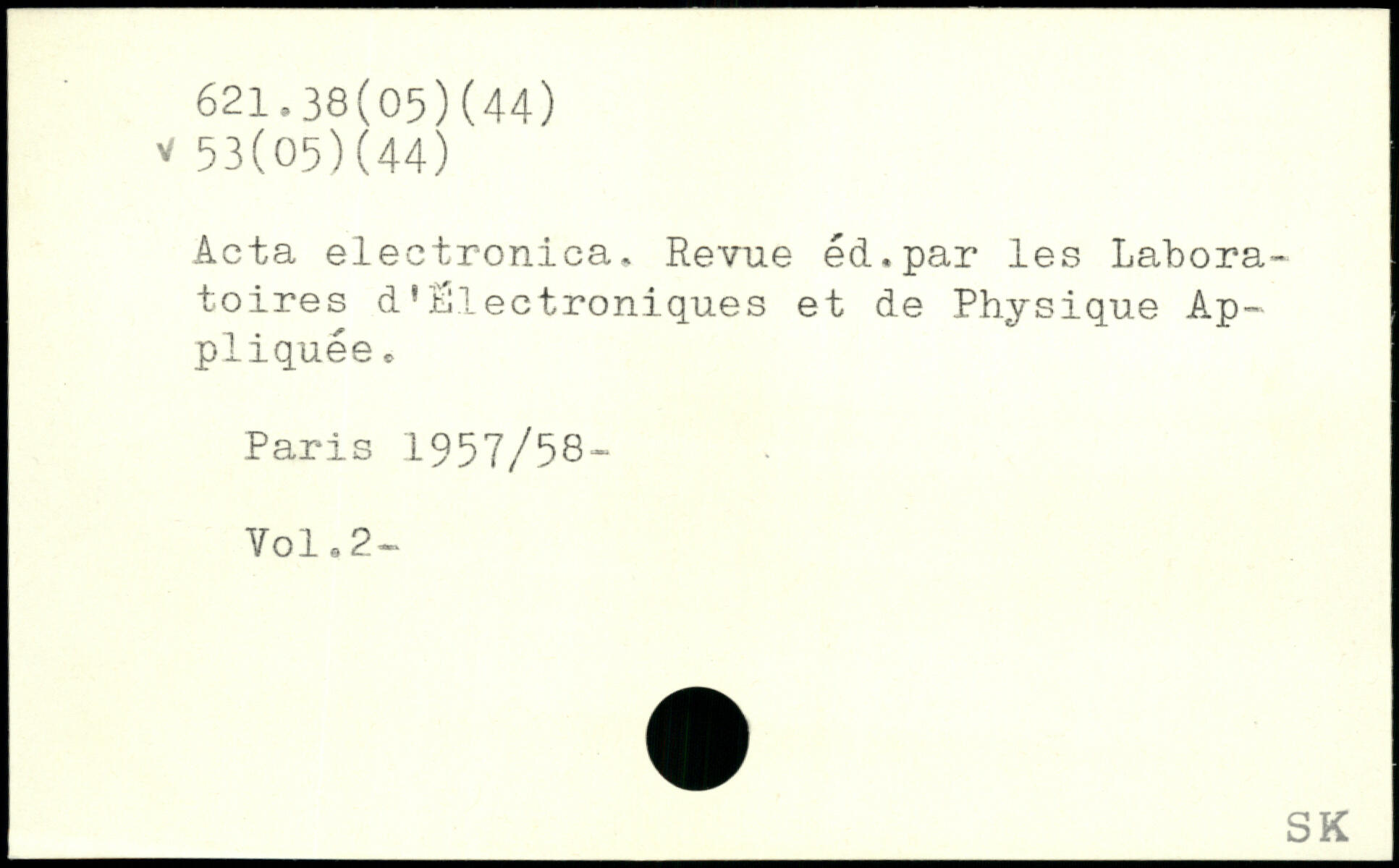 Acta electronica. Revue éd.par les Laboratoires d'Électroniques et de Physique Appliquée