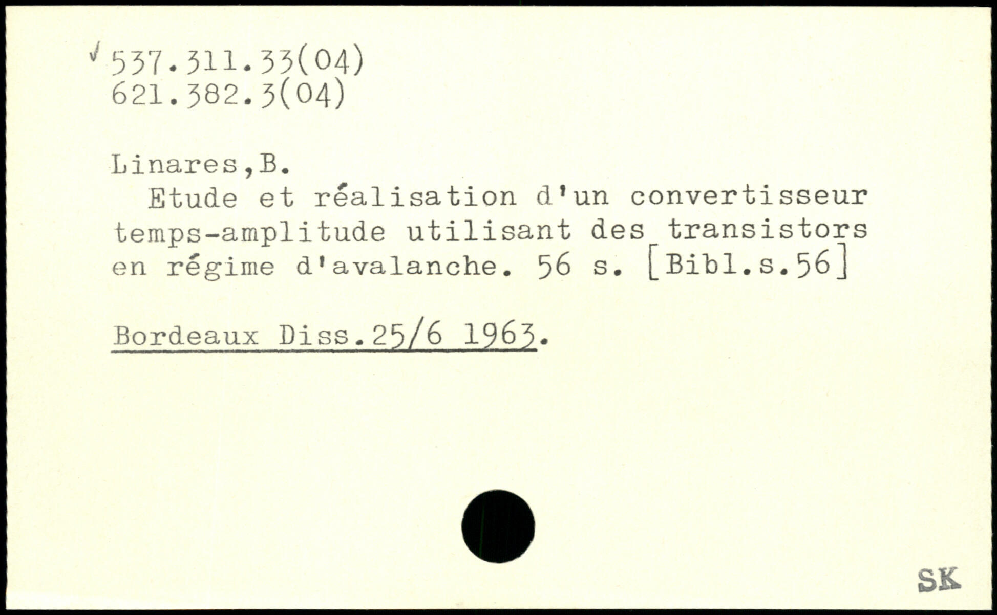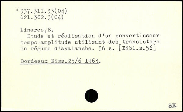 Etude et réalisation d’un convertisseur temps-amplitude utilisant des transistors en régime d’avalanche.
