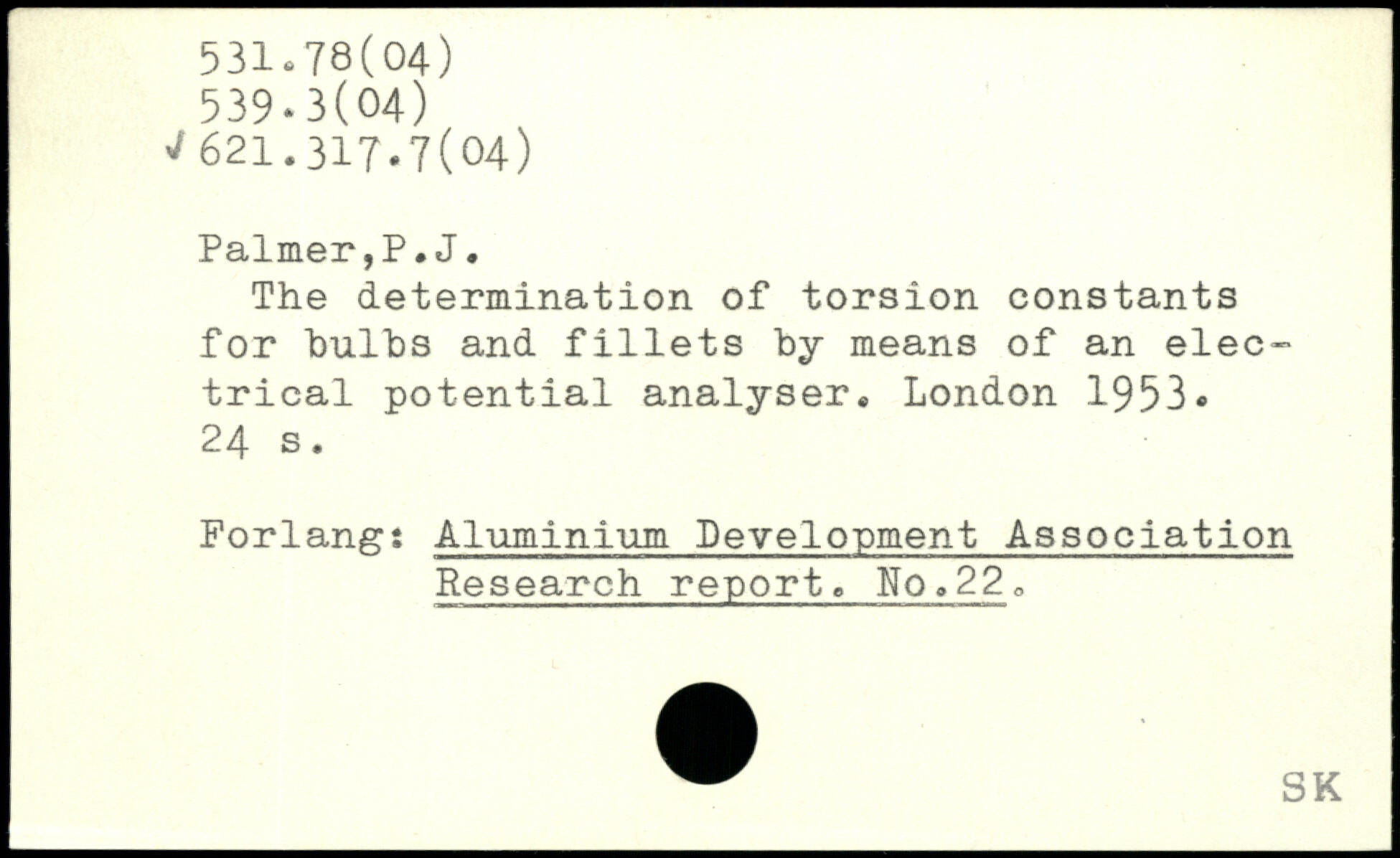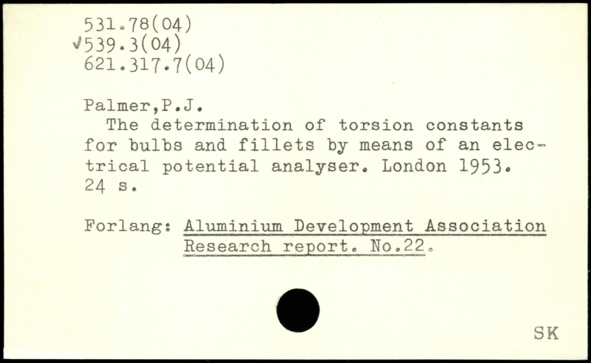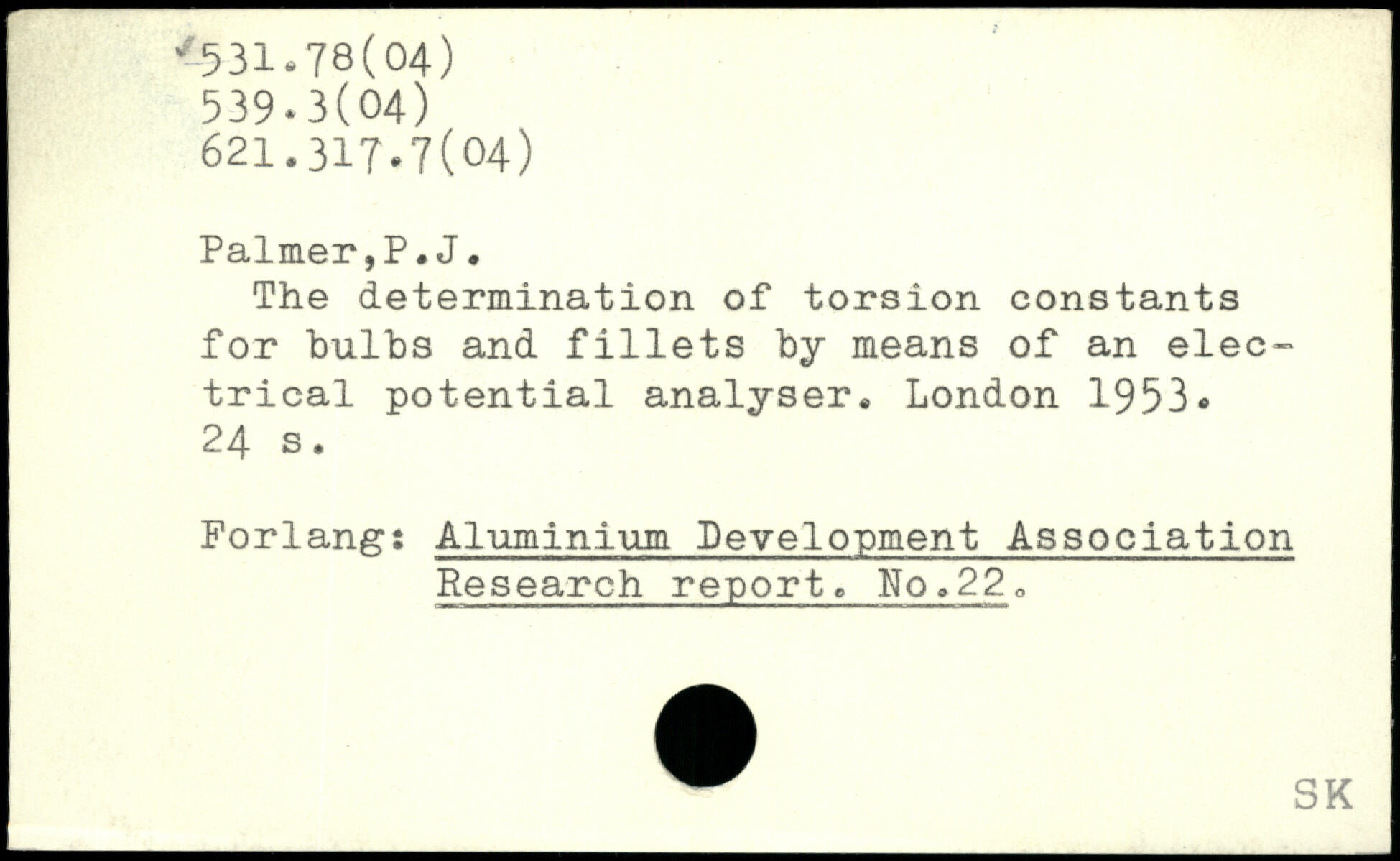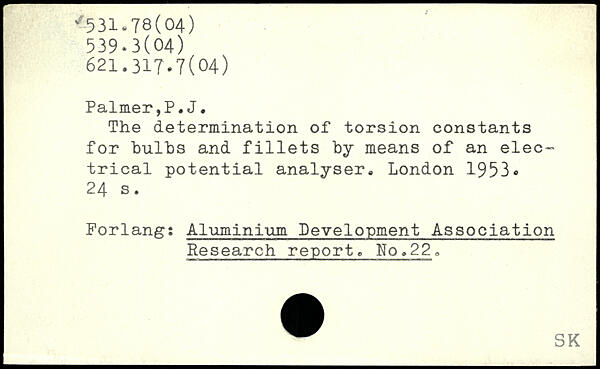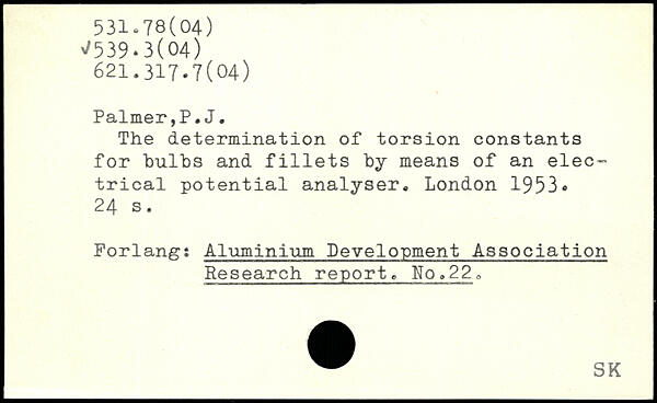 The determination of torsion constants for bulbs and fillets by means of an electrical potential analyser.