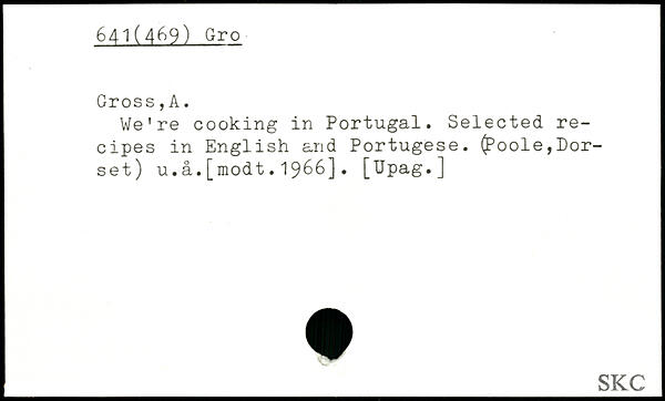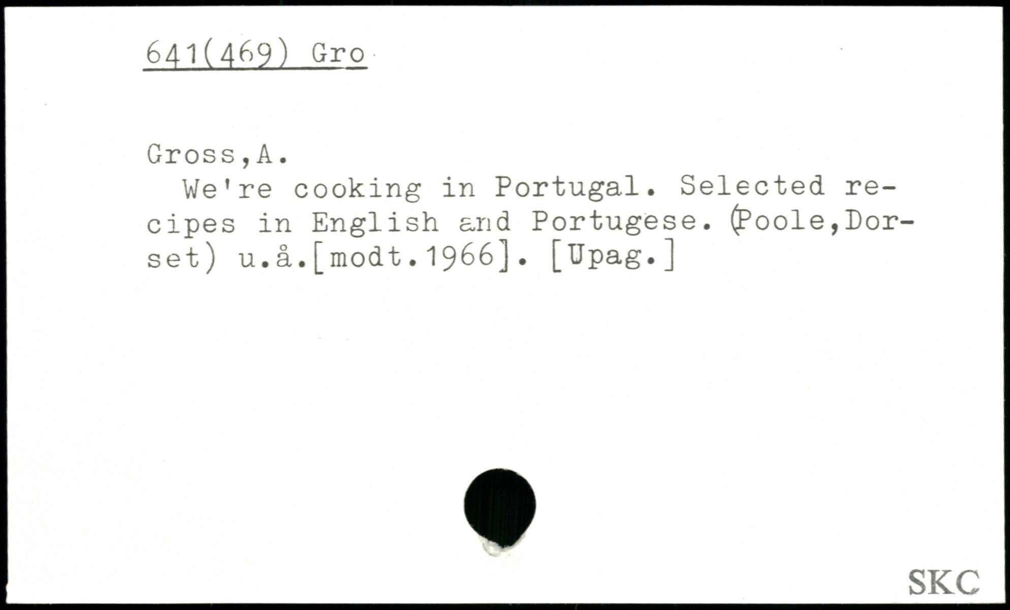 We're cooking in Portugal. Selected recipes in English and Portugese. (Poole,Dorset) u.a.[modt.1966]. [Upag.]