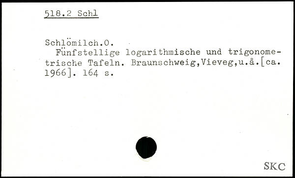 Fünfstellige 1ogarithroisehe und trigonometrische Tafeln. Braunschweig,Vieveg,u.ä.[ca. 1966]. I